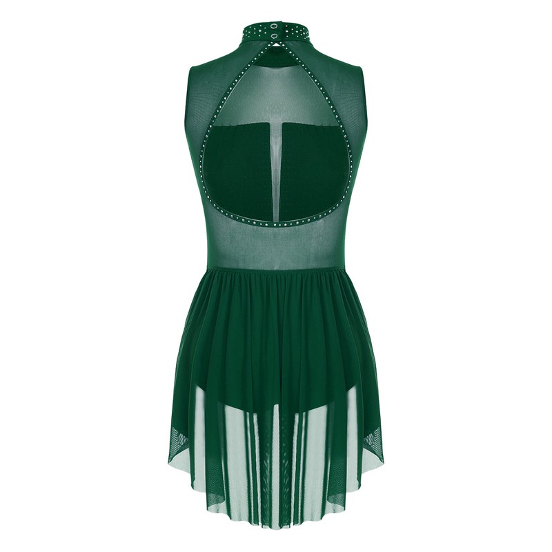 Women’s sleeveless dance dress is decorated with sparkly rhinestones to make you stand out from the show.
