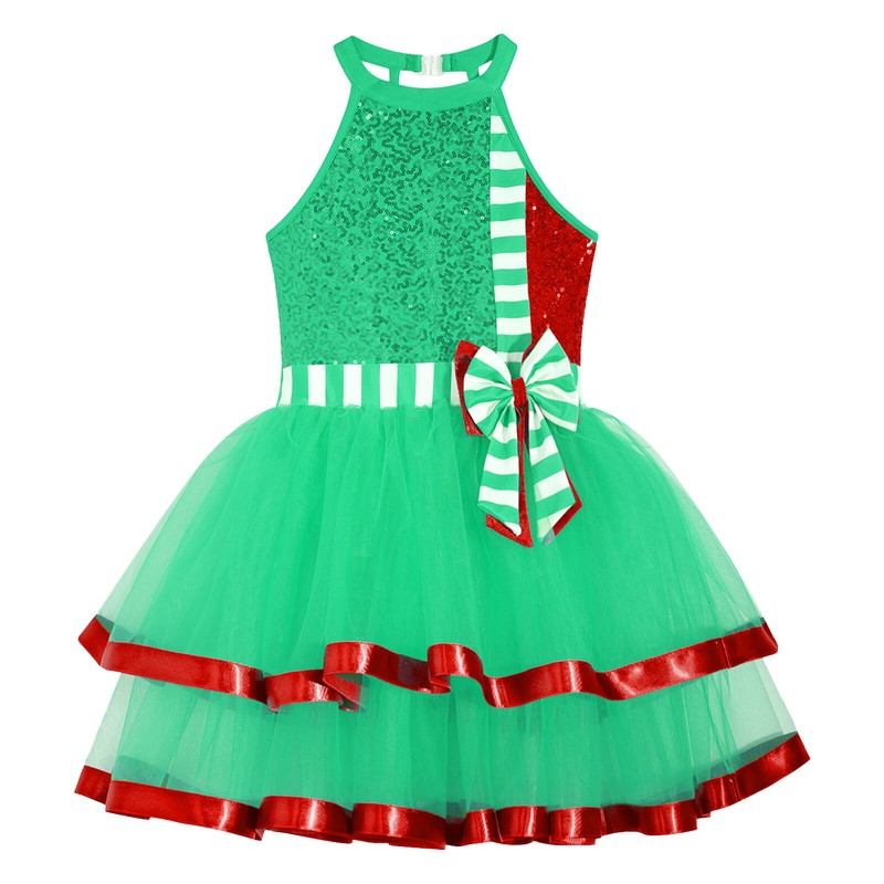 A Chriatmas tutu dress jumpsuit for child size, pullover closure is easy to wear and take off.