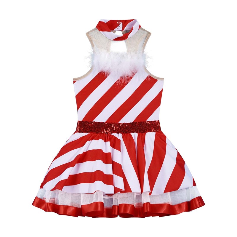 Mesh patchwork, keyhole back, faux fur and sequins adorned, stripes printed dress.