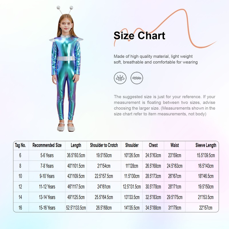 Set Include: 1Pc Kids Alien Jumpsuit, 1Pc Hair Hoop