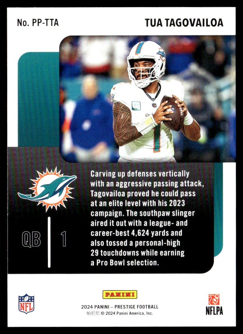 | 2024 Panini Prestige Prestigous Pros Tua Tagovailoa Miami Dolphins #PP-TTA | ||||||||||||||||||