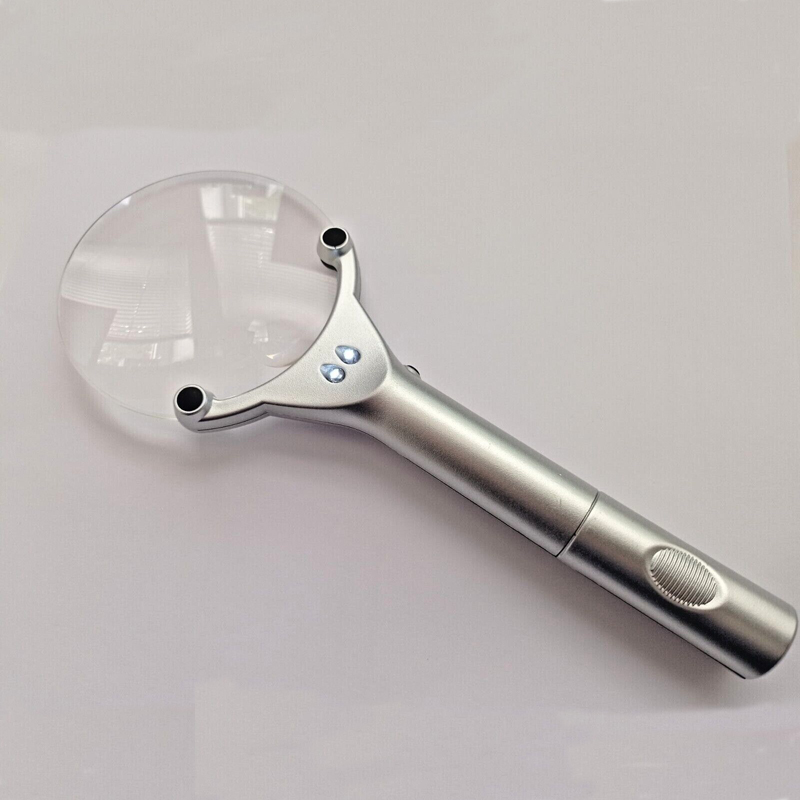 2.5X/6X Frameless Magnifying Glass Hand-Held Magnifier With 2 LED Lamp Silver