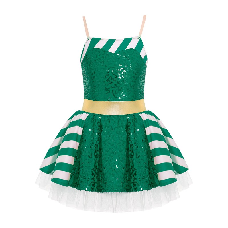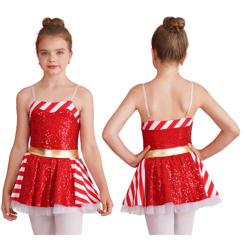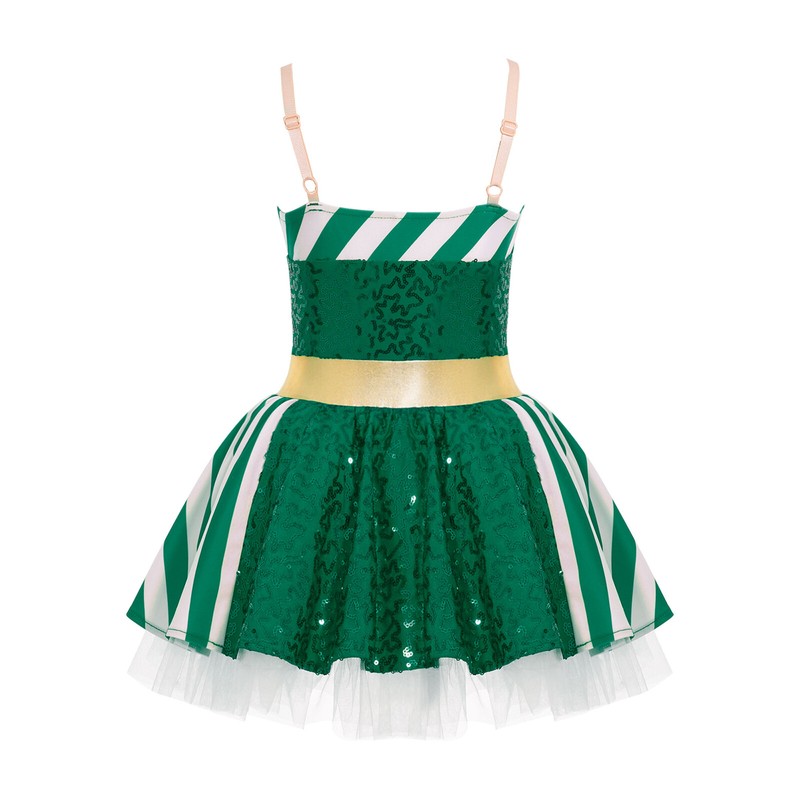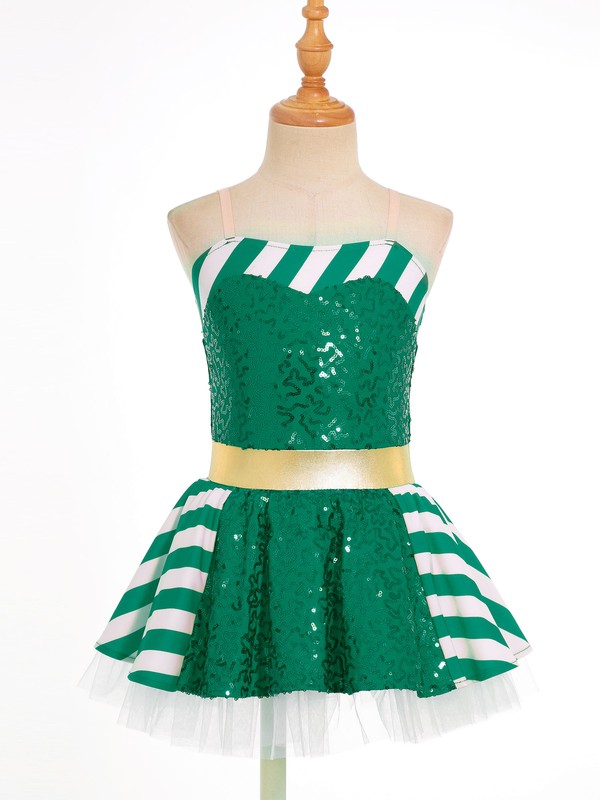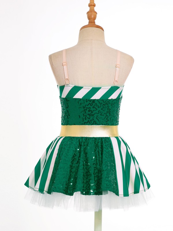Striped cloth and shiny sequin patchwork is full of Christmas mood, and trims with tulle underskirt.