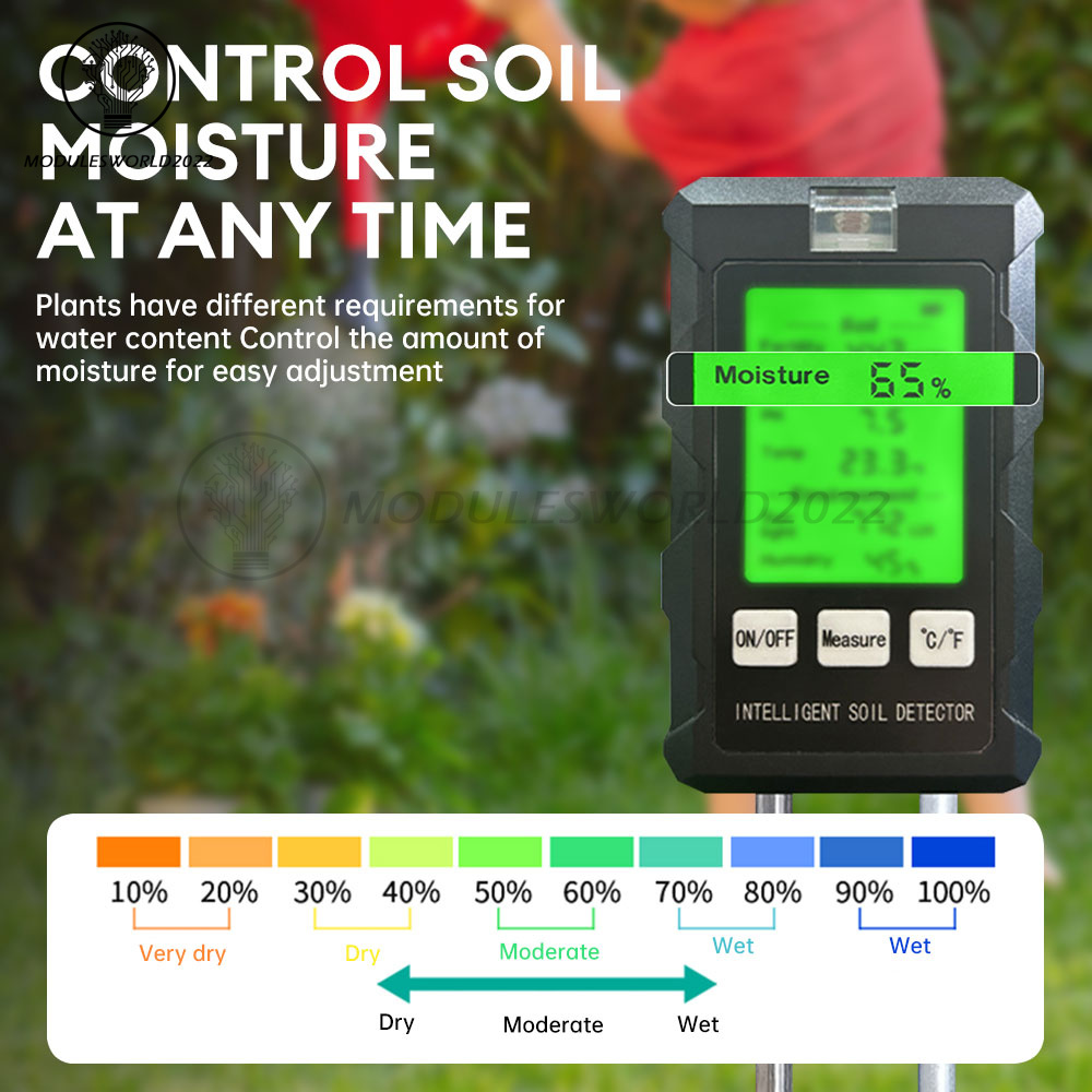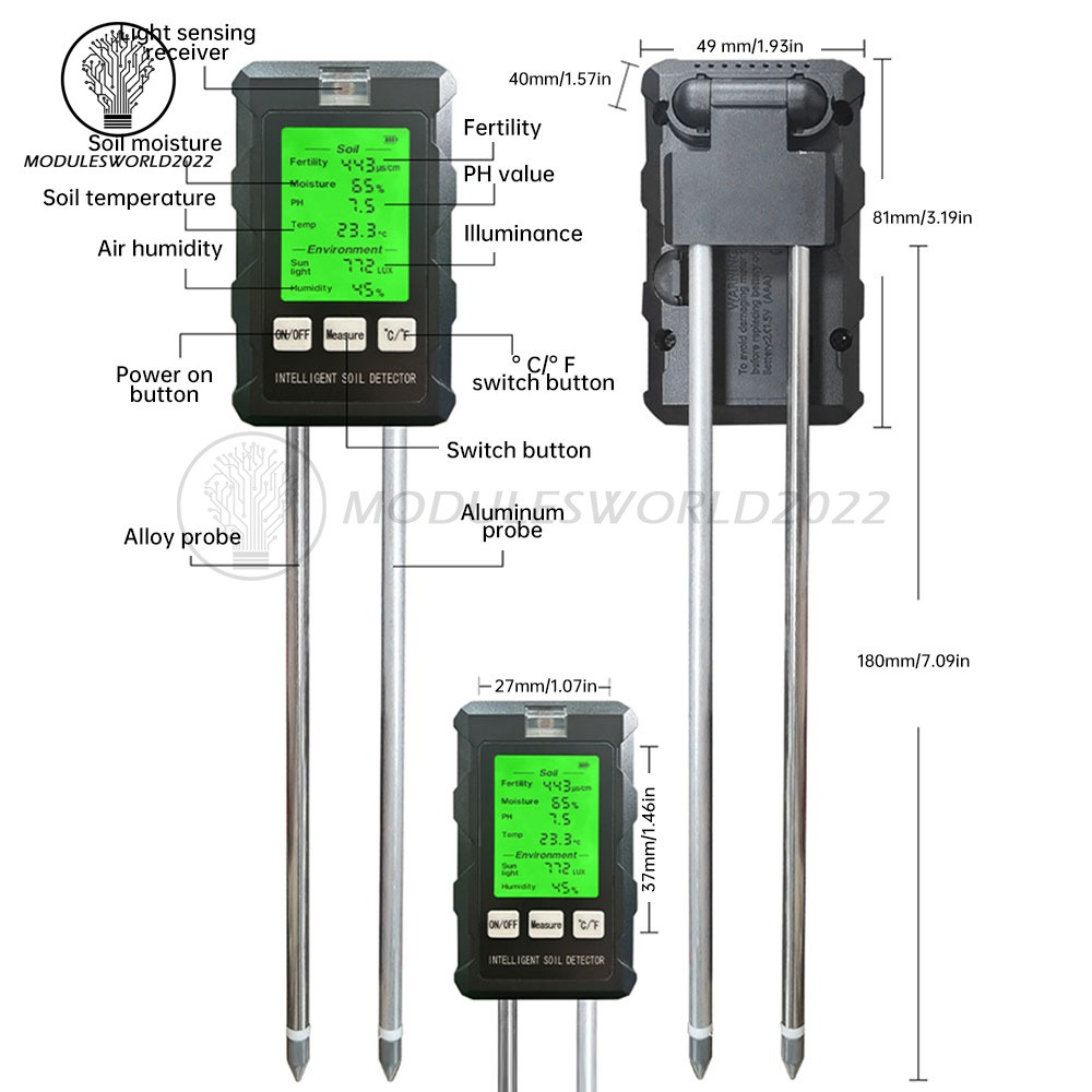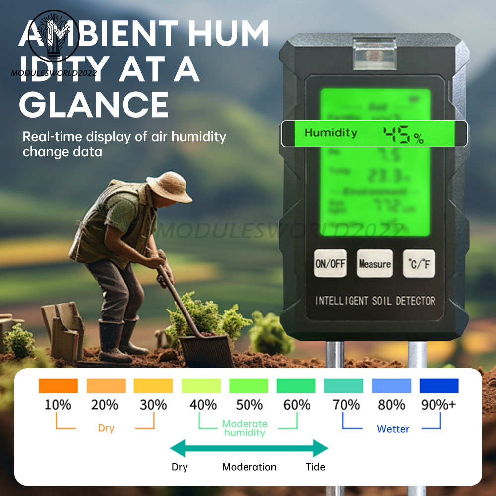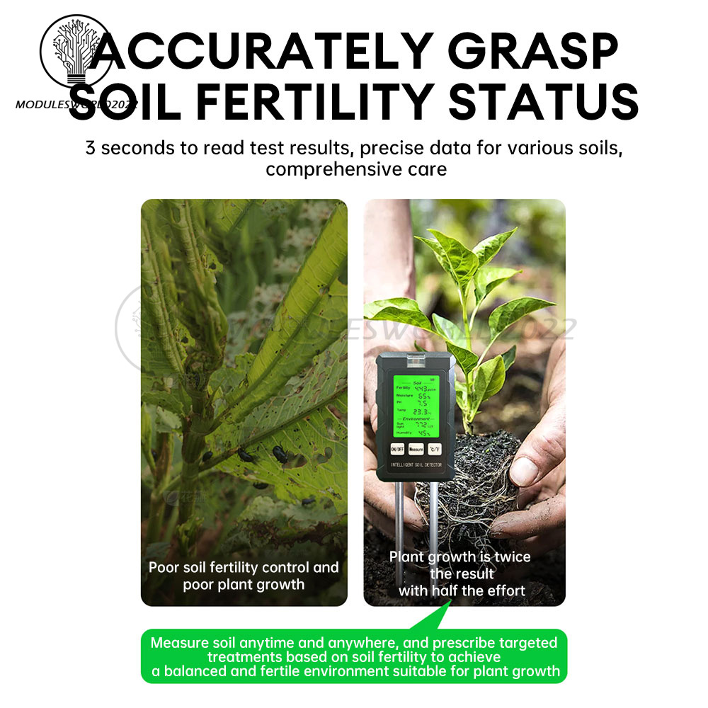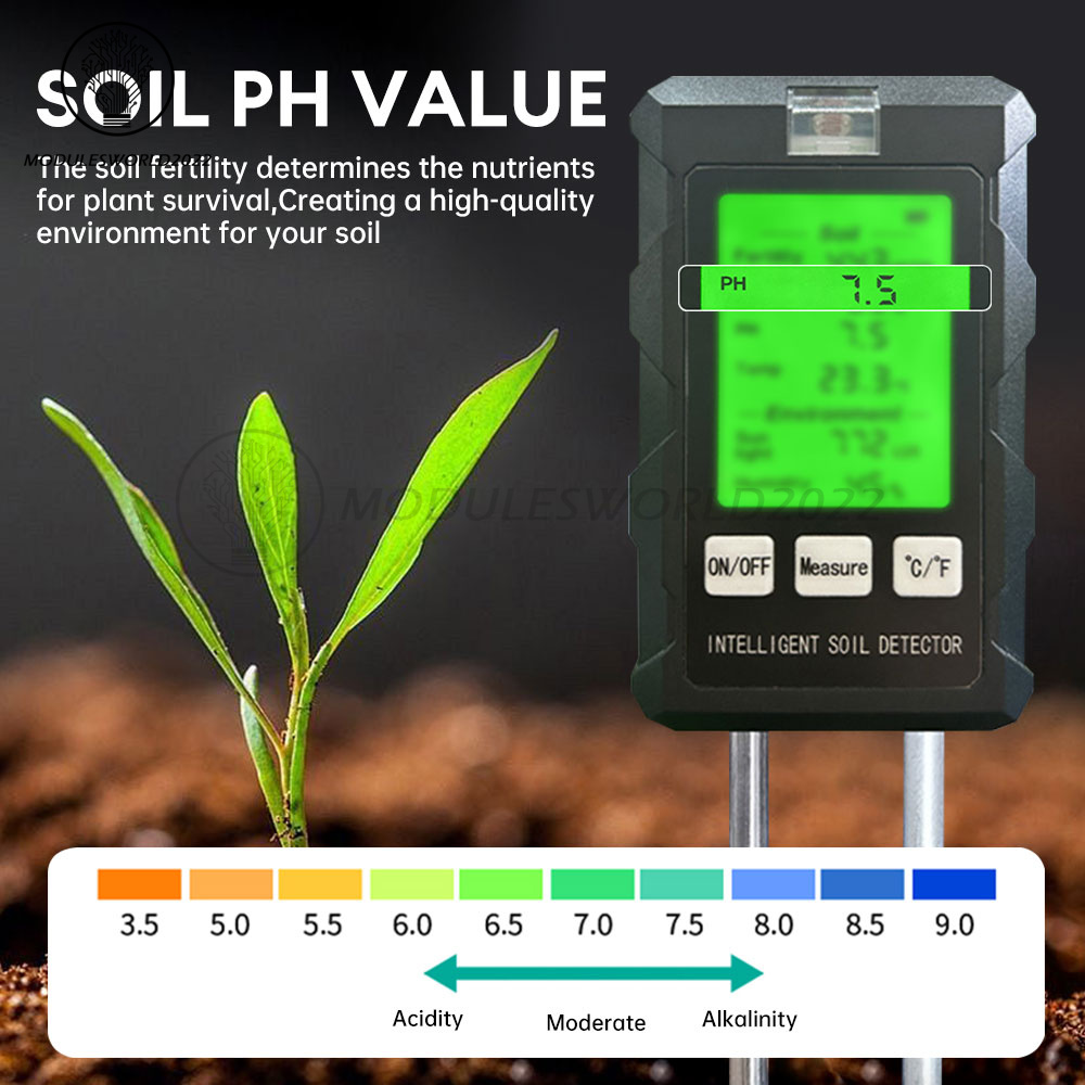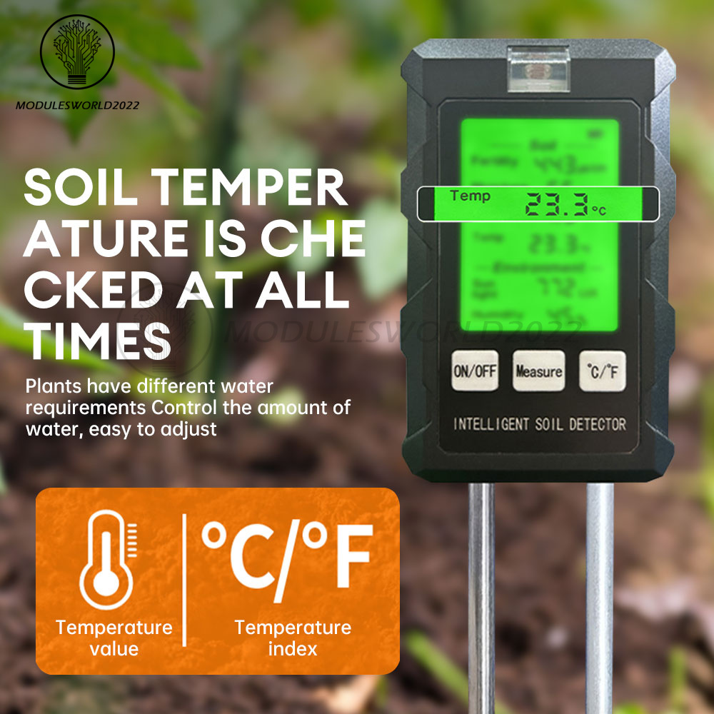 5. Backlit screen display: HD backlit screen design, clear readings and multiple parameters are displayed at the same time, suitable for all kinds of soil testing.
