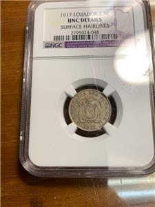 Ecuador 1917 2.5 Centavo NGC Graded Unc Details U.S. Mint Made