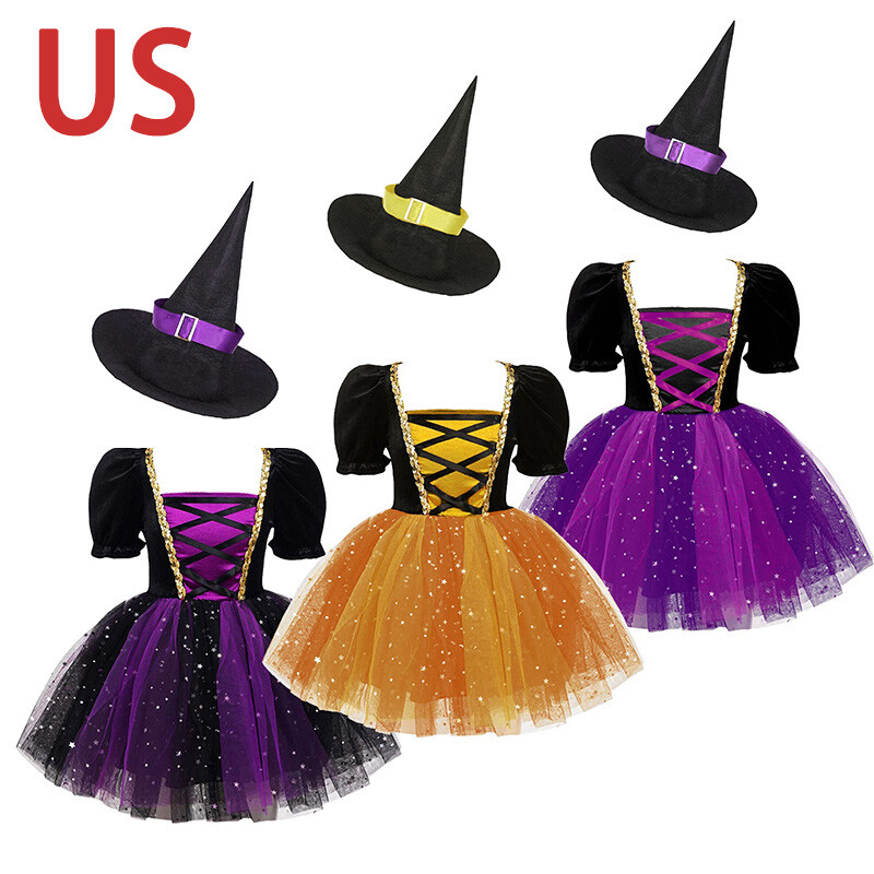 Long sleeves, the top is made of velvet, skirt is made of net, with stars and hair balls attached.