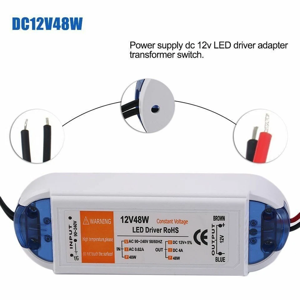 Neuer DC 12V LED Treiber Blau und Orange 18W / 28W / 48W / 72W / 100W Netzteil Treibertransformator Produkt Beschreibung: - 100% nagelneu und hohe Qualität.