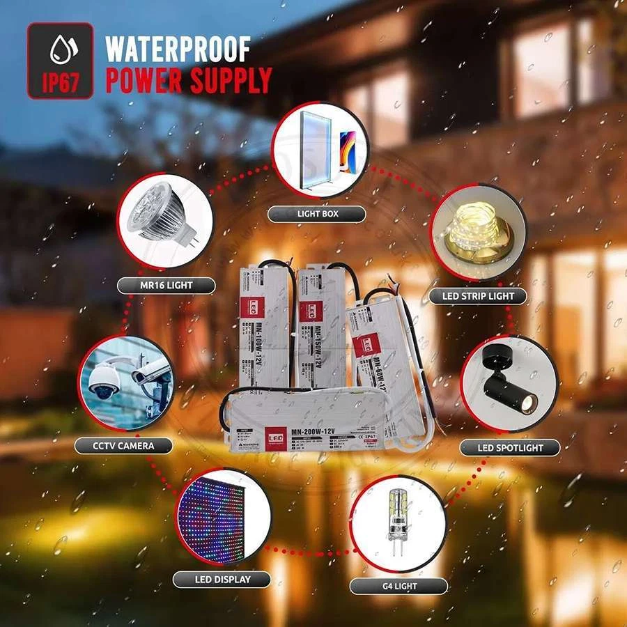 Waterproof 12V LED transformer power supply IP67 switching power supply driver for LED strip