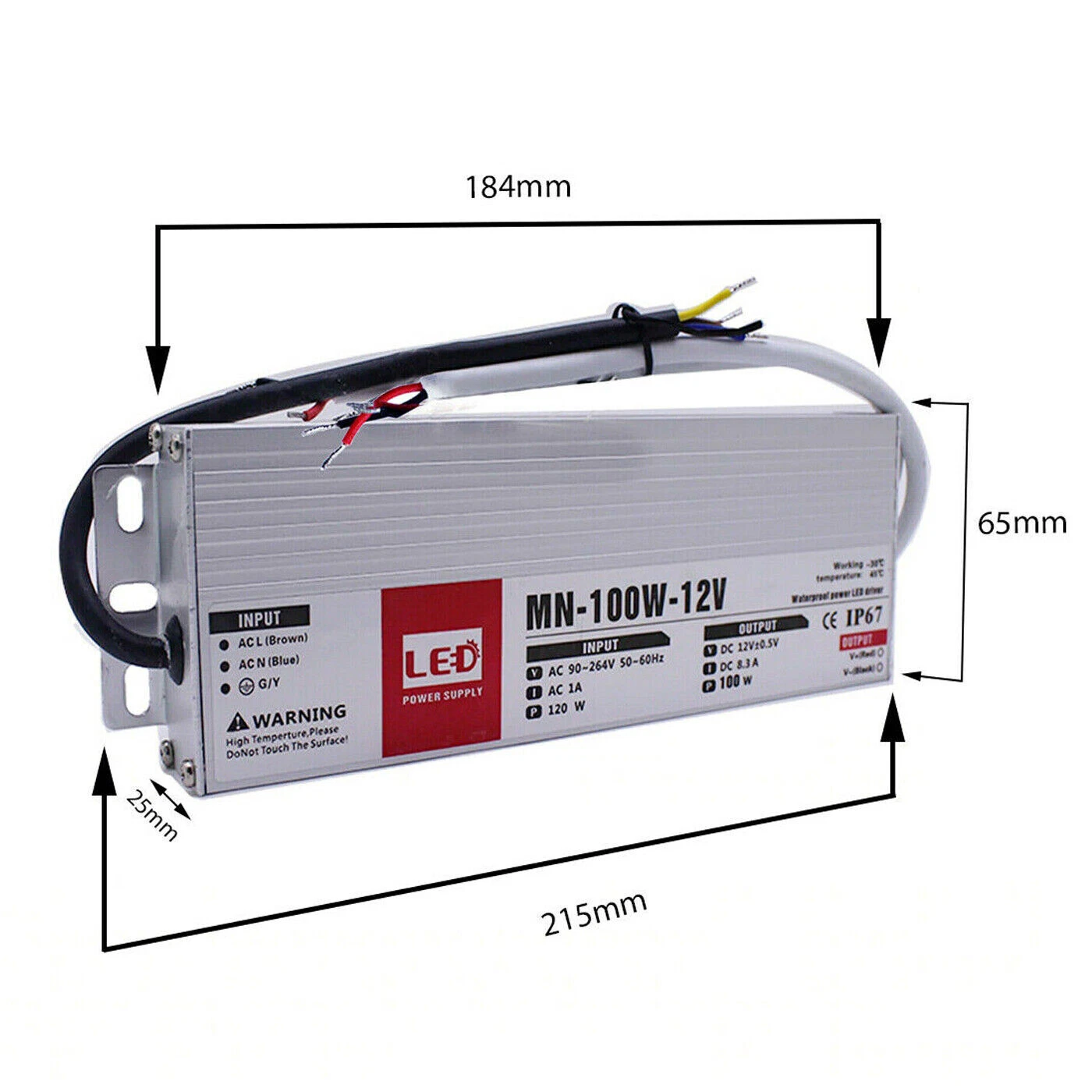 - 100 W. Size: L 18.4 cm x W 6.5 cm x H 2.5 cm. Base bracket 21.5 cm