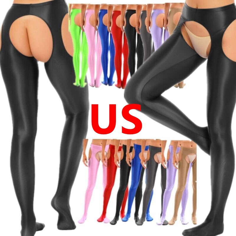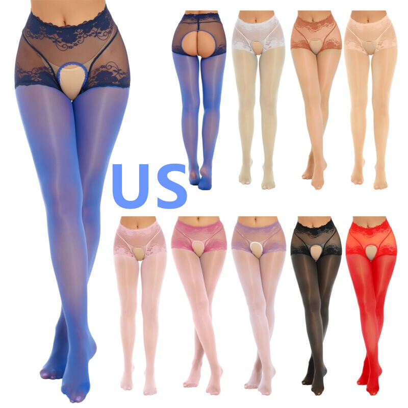 Womens Hollow Out Stockings Leggings Mid Waist Cutout Crotchless Pantyhose.