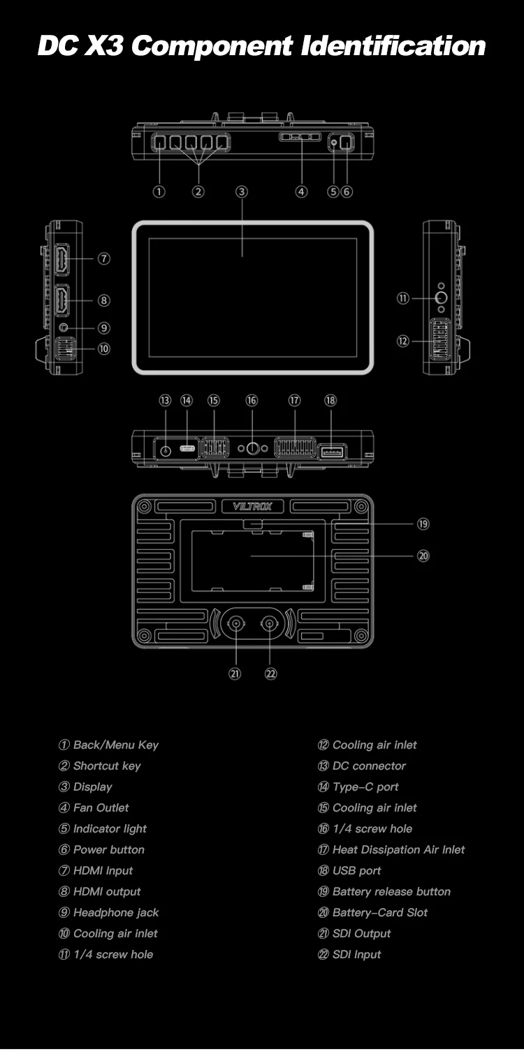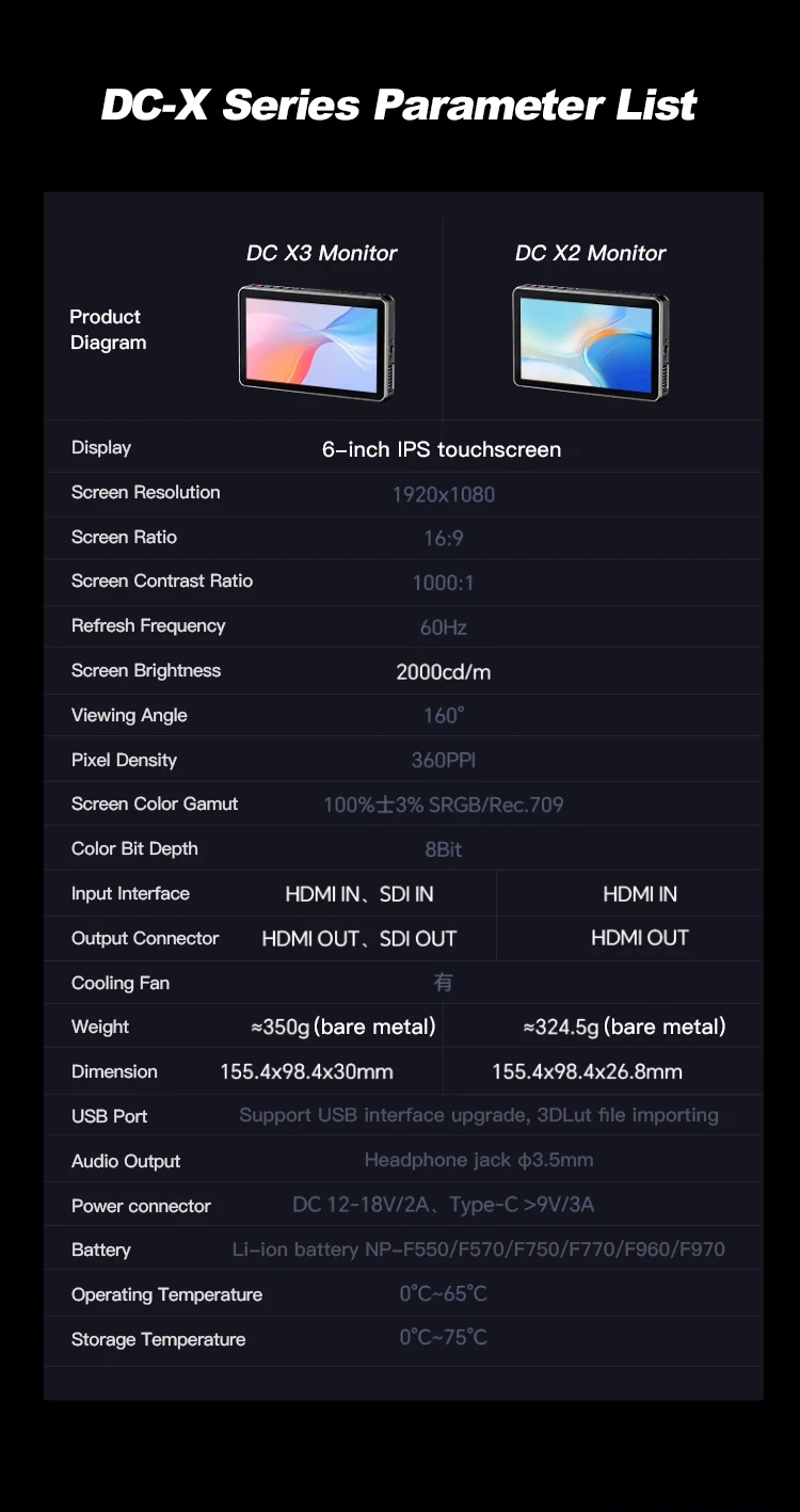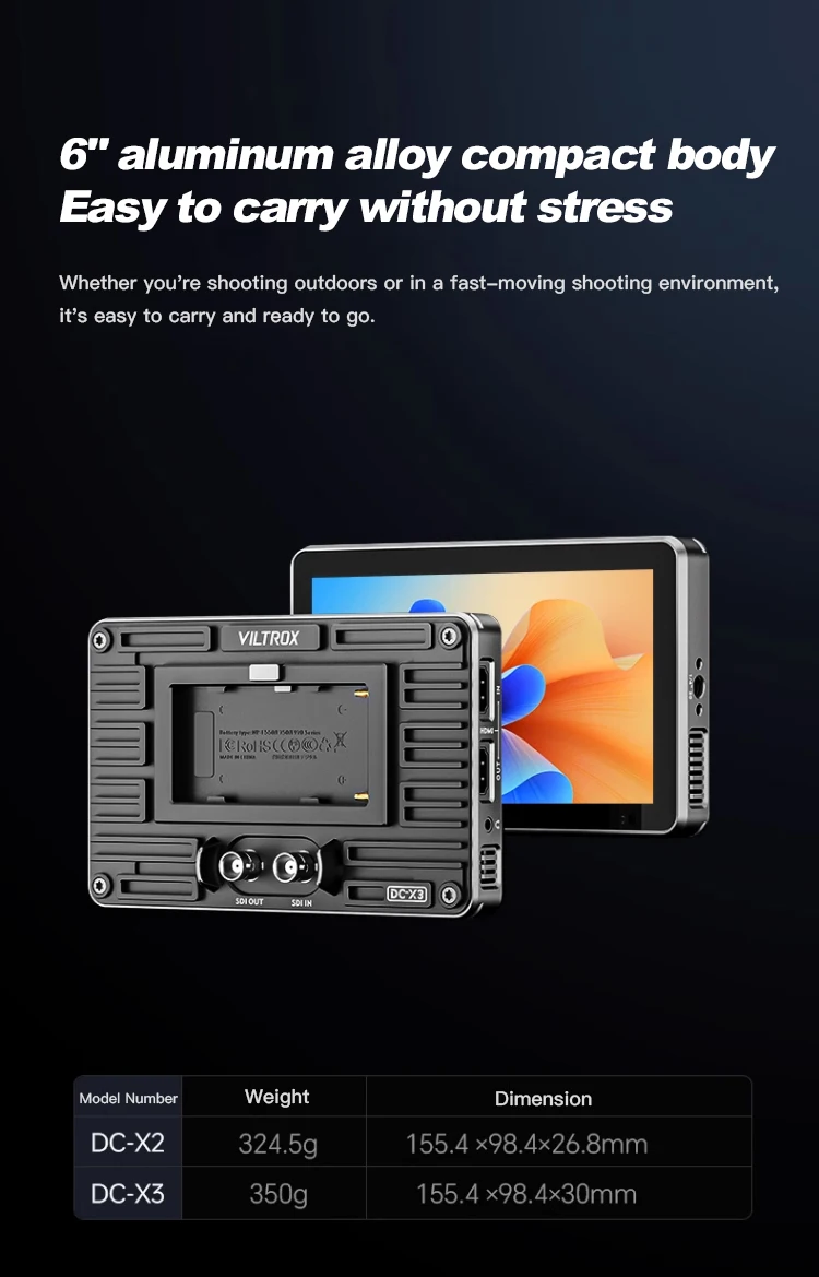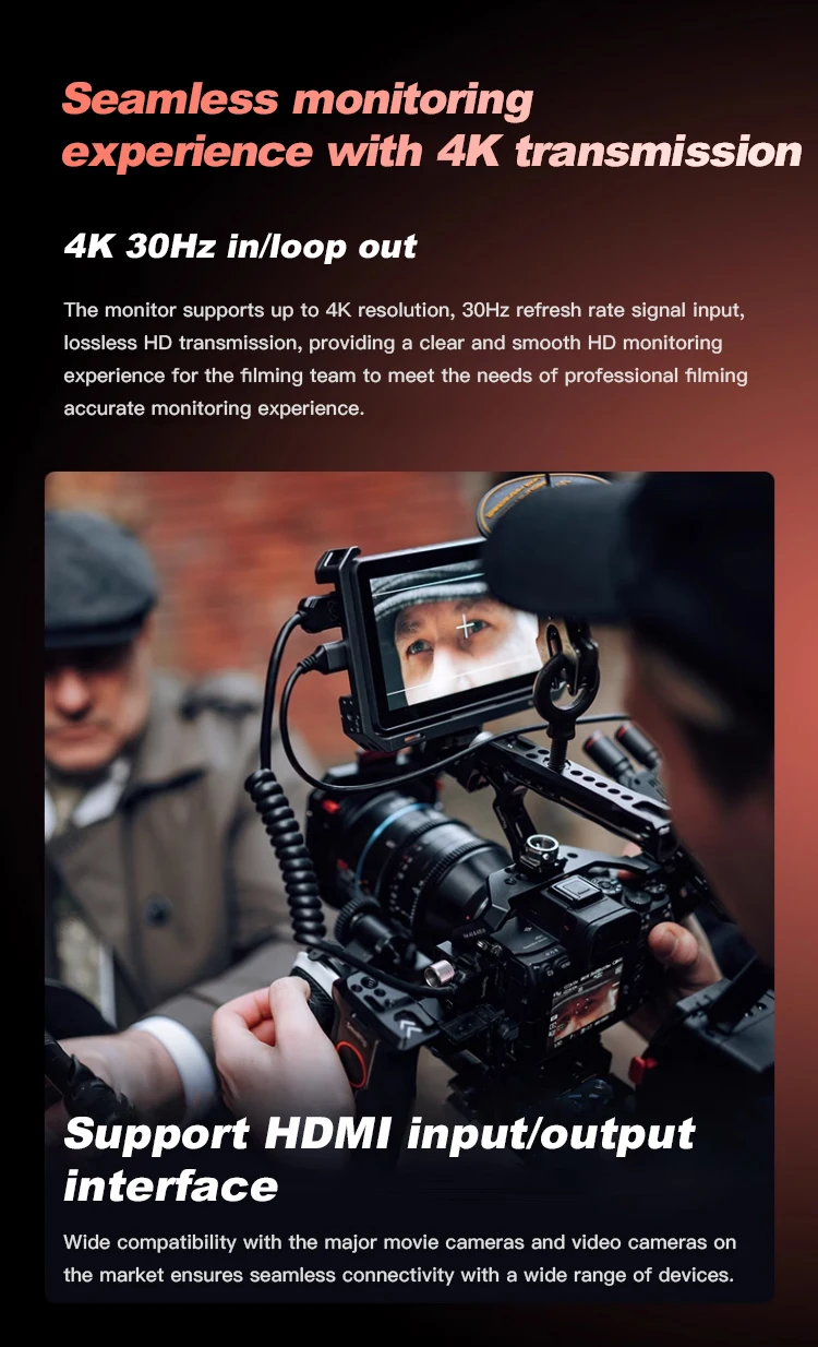 HDMI and SDI inputs/outputs for seamless integration with various devices; lightweight aluminum alloy body designed for reliability in all environments.