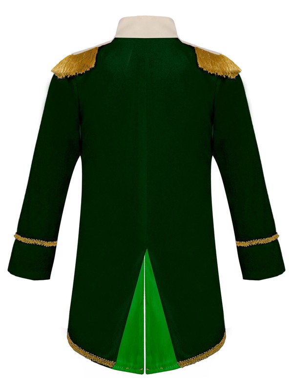 Adorned with epaulet with fringe, gold braiding and decorative gold buttons, add royal court style.