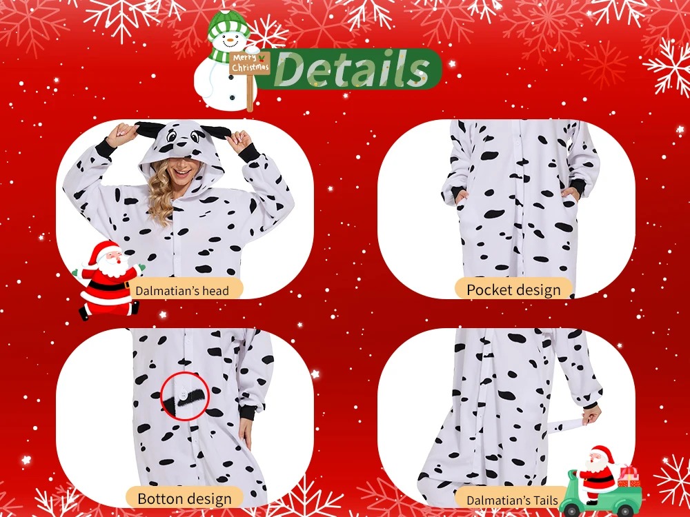 On holidays like Christmas or Halloween, our dalmatian dog one-piece cosplay sleepwears add atmosphere to a simple holiday.You can wear it to take fun photos with your family
