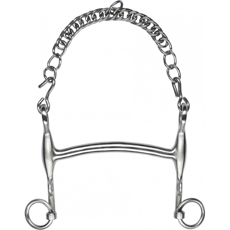 Kandarengebiss massiv gegossen aus Edelstahl. Incl. Kinnkette und Haken. Mundstärke 13mm.