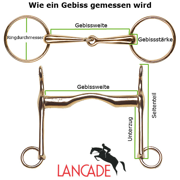 Tailliertes Kandarengebiß aus satiniertem Edelstahl, massives Mundstück.