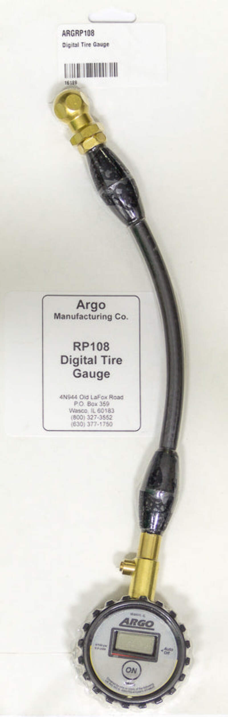 Manufactured by: ARGO MANUFACTURING Manufacturers Part (MPN): RP108 Description: Digital Tire Gauge Tire Pressure Gauge - 0-100 psi - Digital - 1/2 lb Increments - Each Product Notes (if available)