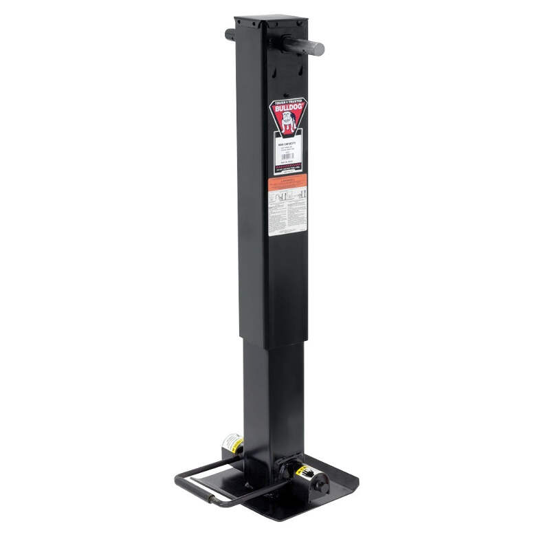 Trailer Jack - Bulldog Twin Cam HD - Manual - Sidewind - 12-1/2 in of Travel - 13-1/2 in Drop Leg Extension - 25000 lb Capacity - Crank Required - Steel - Black Paint - Each Product Notes (if available)