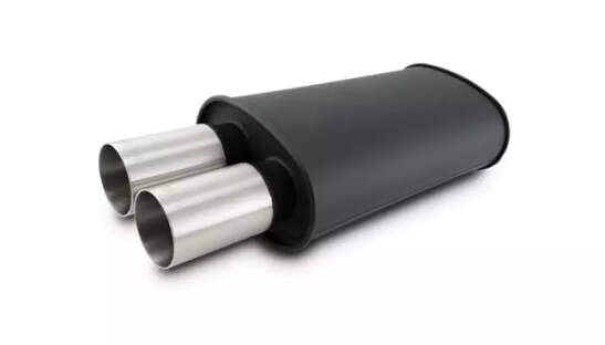 Manufactured by: VIBRANT PERFORMANCE Manufacturers Part (MPN): 12320 Description: Streetpower Flat Black Oval Muffler 2.5in Inlet Muffler - Streetpower - 2.5 in Center Inlet - Dual 3 in Outlets - Stainless Brushed Tips - 15 x 9 x 5 in Oval Body - 22.5 in Long - Stainless - Black Powder Coat - Universal - Each Product Notes (if available)