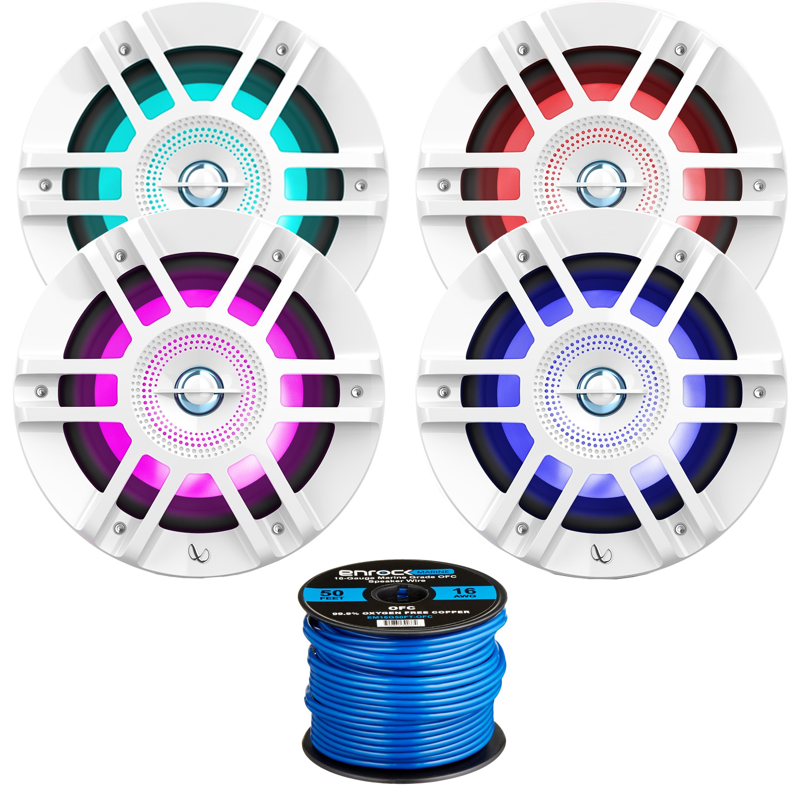 4x Infinity 6.5" 300W Max Power White Marine RGB LED Speakers, Speaker Wire