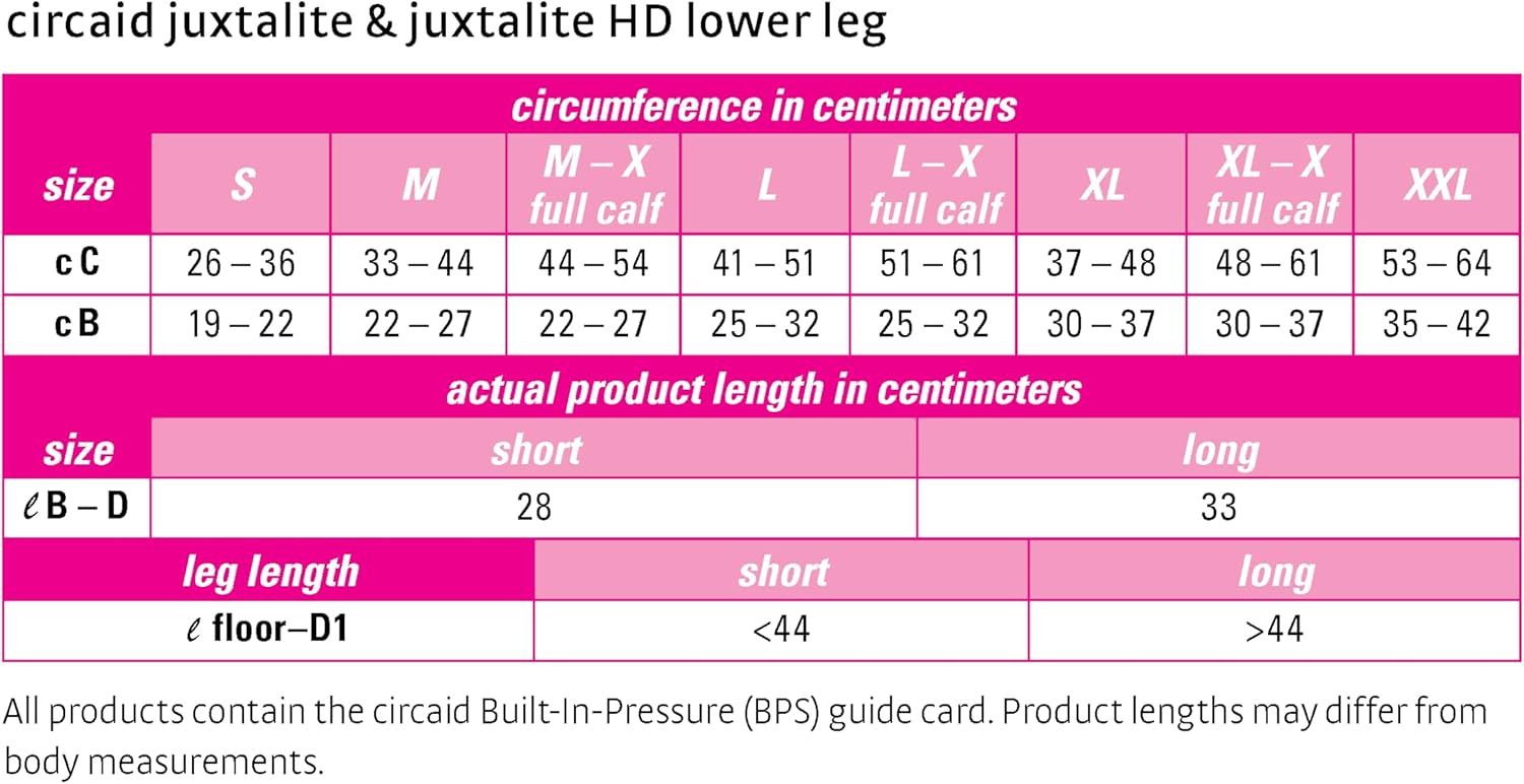 CONTAINS: 1- Juxtalight lower leg compression legging, 1-pair of compression anklets, 1-undersleeve (footless) and 1-built-in pressure system guide card.