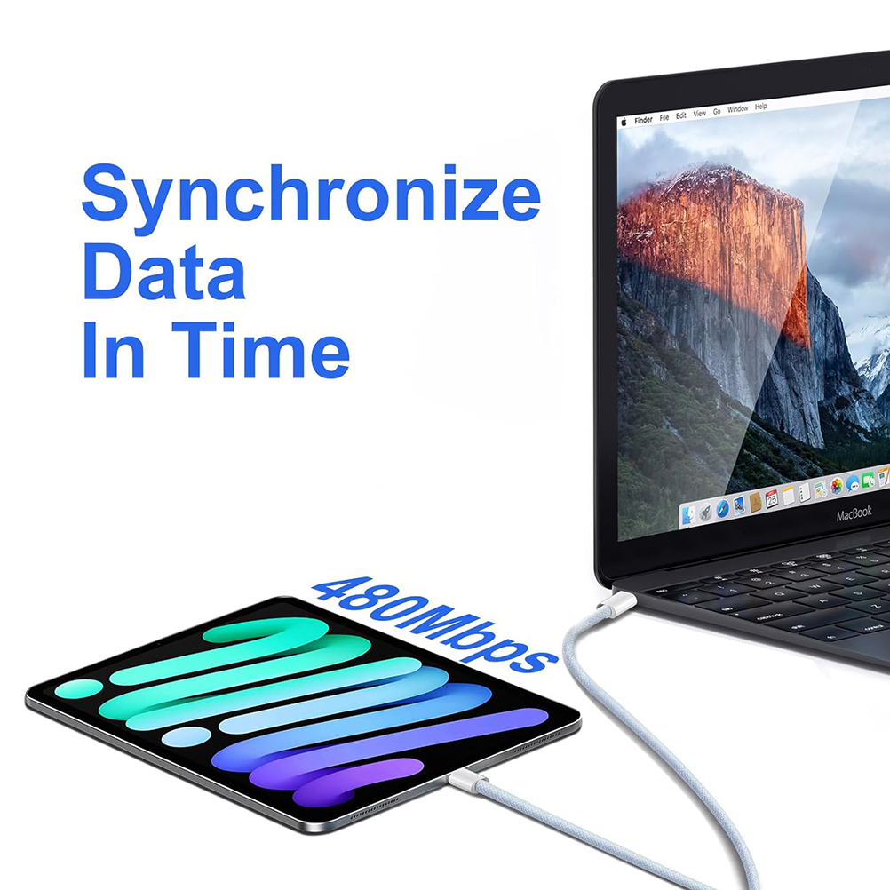 Genießen Sie blitzschnelle Datenübertragungen mit bis zu 480 Mbit/s. Das USB C datenkabel unterstützt Sie bei der Übertragung und Synchronisierung von Dateien, Dokumenten, Ihren Lieblingsfilmen, Musik und Bildern mit außergewöhnlicher Geschwindigkeit und Effizienz. 1G-Dateien werden innerhalb von 30 Sekunden übertragen. Verabschieden Sie sich von schleppenden Übertragungen. (Unterstützt keine Video-/Medienausgabe)