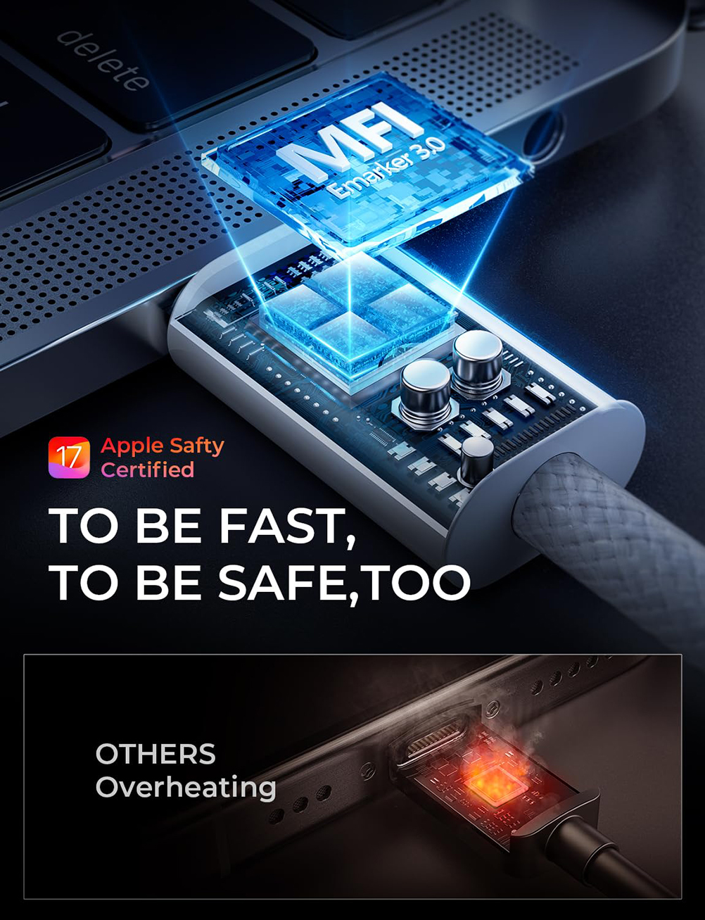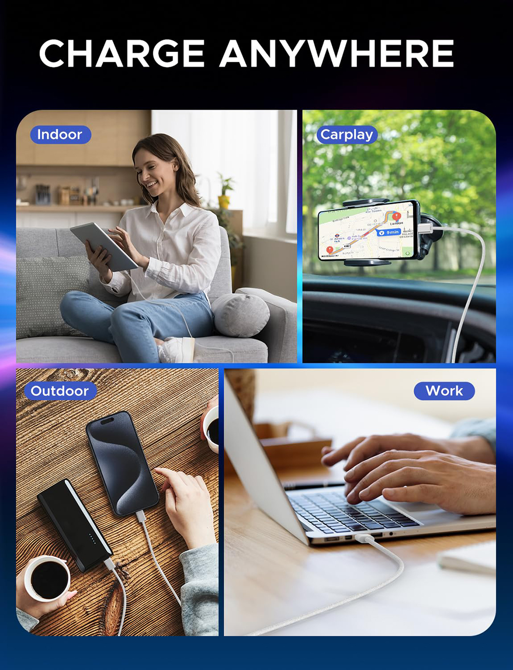 Erleben Sie das Laden der nächsten Stufe mit der Schnellladefunktion von USB C auf USB C kabel. Unterstützt PD3.0 und QC3.0, bis zu 20 V/3 A (maximal 60 W), hergestellt aus fortschrittlichen, 80 % dickeren Supraleitfähigkeits-Kupferdrähten, erzielt es einen geringeren Widerstand und verleiht Ihrem iPhone 15-Serie und Samsung Galaxy-Serie in nur 30 Minuten satte 50 % Akku . (Hinweis: Die tatsächliche Ladegeschwindigkeit hängt von Ihrem Gerät und Ladegerät ab.)