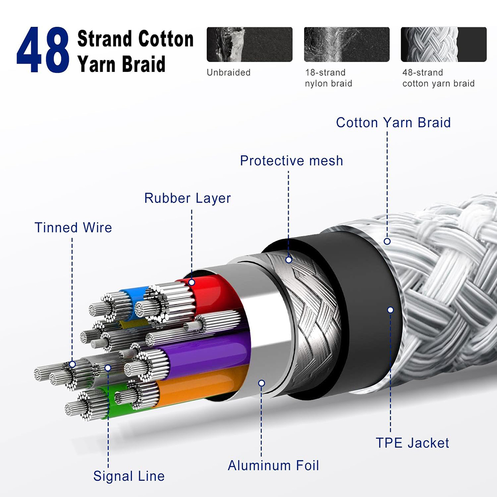 Dieses USB-Typ-C-Kabel besteht aus robustem geflochtenem Nylon und rostfreien Verbindungen aus einer Nickel-Wolfram-Legierung, sodass Sie keine Angst vor t?glicher Abnutzung haben müssen. Sein mehr als 20.000-maliger Biege- und Stecktest, dass er auch bei h?ufigem Ein- und Ausstecken intakt bleibt. Kabelverwirrungsfreies Design für problemlose Aufbewahrung und Nutzung, damit Ihr Arbeitsplatz ordentlich und organisiert bleibt.