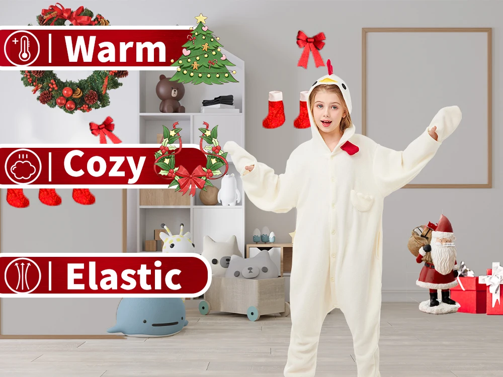 On chilly winter evenings,our white chicken onesies provide extra warmth and coziness. Whether watching a movie, reading a book, or simply relaxing in bed