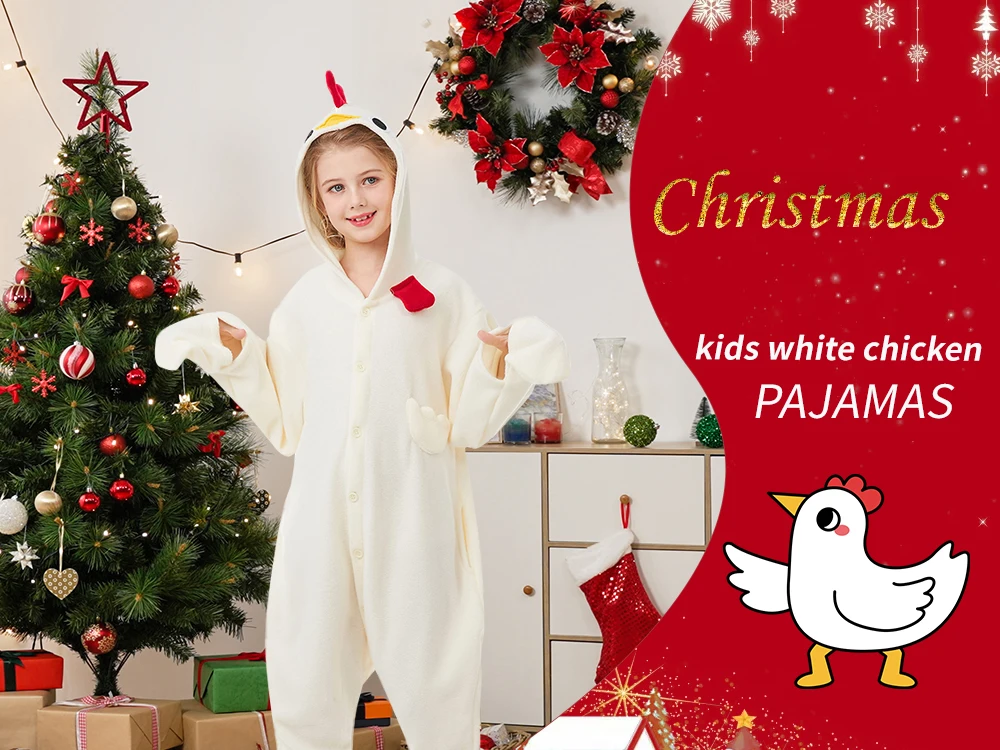 This Christmas, let's make our homes a haven of warmth, laughter and unforgettable memories - all in these festive White chicken one-piece pajamas.