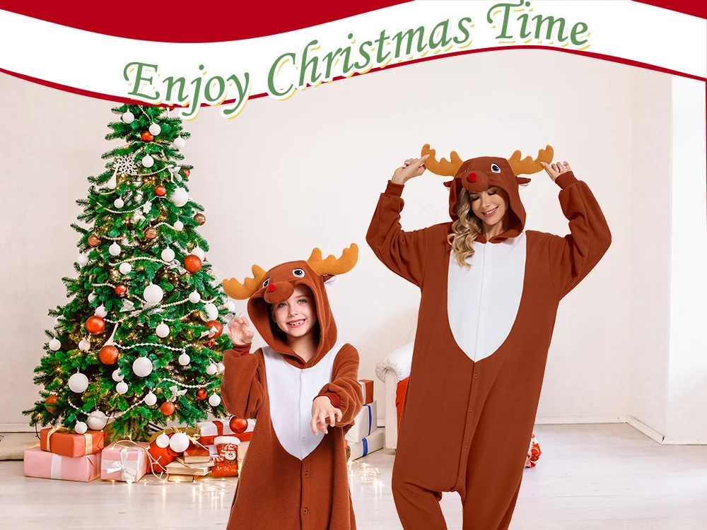 On holidays like Christmas or Halloween, our Reindeer one-piece cosplay sleepwears add atmosphere to a simple holiday.You can wear it to take fun photos with your family and make many fantastic memories.