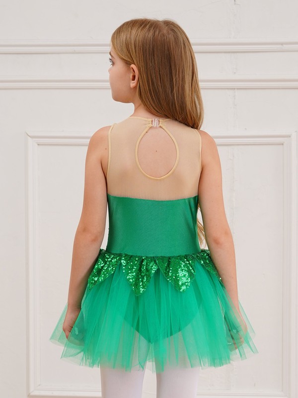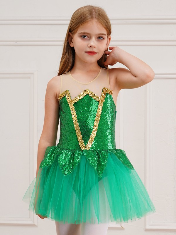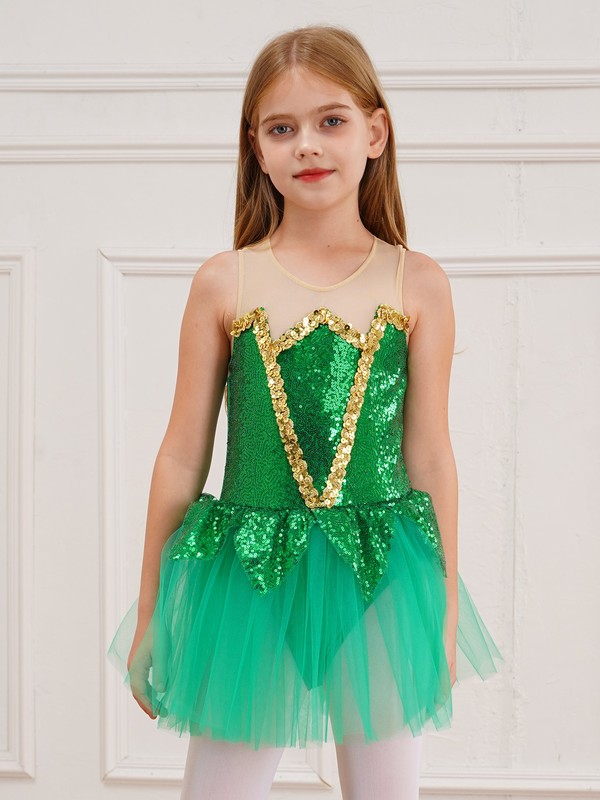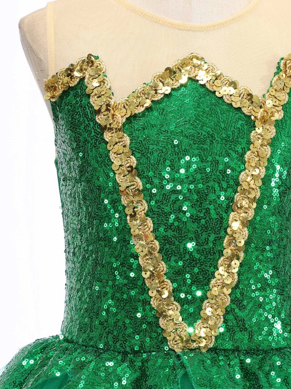 Decorated with shiny sequins, golden patchwork and sequined petal hem around waist, making girl super beautiful and unique.