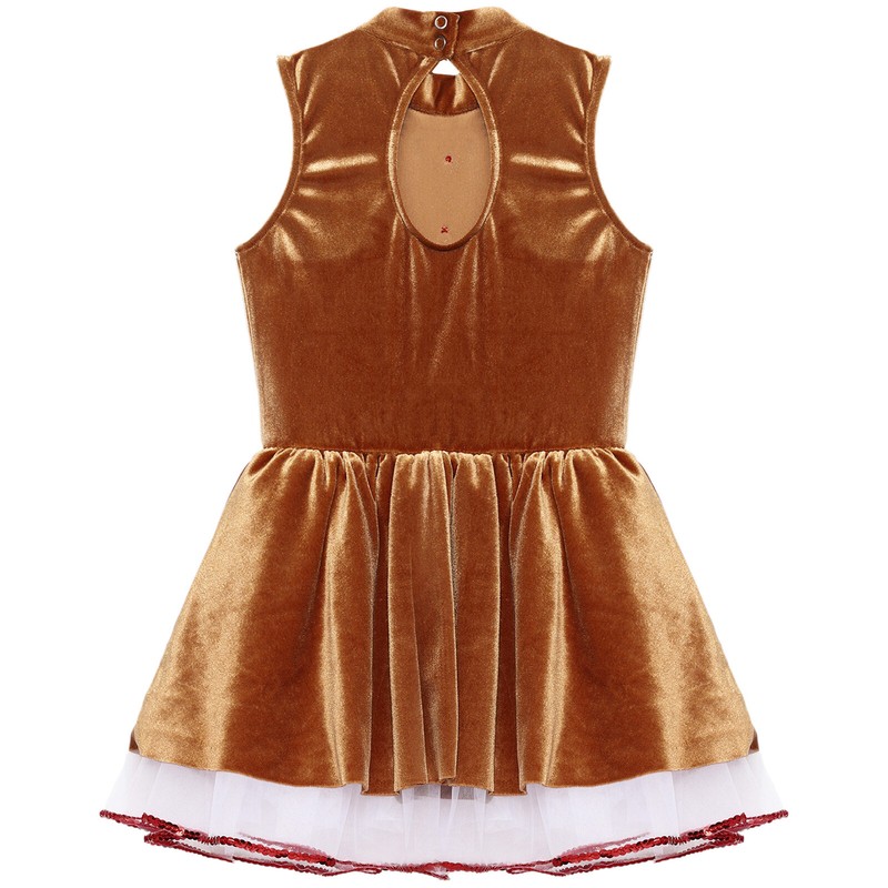 One-piece Christmas gingerbread man costume for child size, it is leotard style with velvet dress and tutu hem.