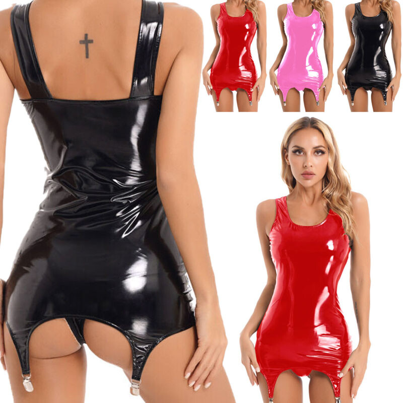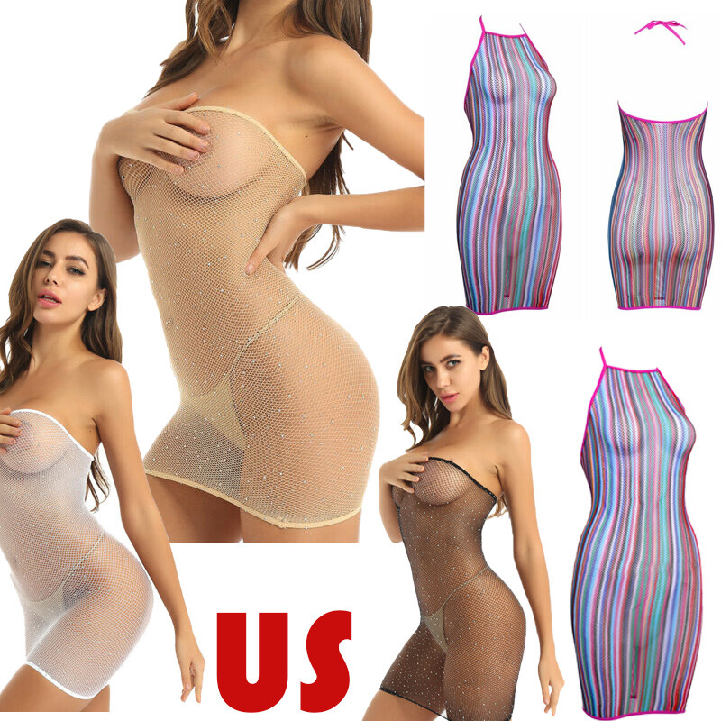 Womens Scoop Neck Wide Shoulder Strap Bodycon Dress Hollow Out Mini Dresses Lingerie Nightwear.