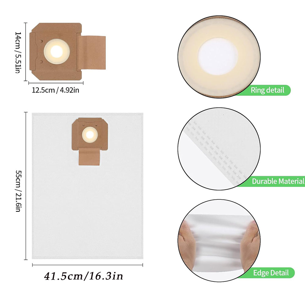 Hervorragende Filterleistung:Der Filterbeutel des Staubsaugers besteht aus hochwertigem Vliesstoff und Kunststoff, der langlebig ist und die gesammelten Partikel und Staub auffangen und filtern kann, um zu verhindern, dass sie in das Innere des Staubsaugers gelangen und die Umgebung sauber zu halten.