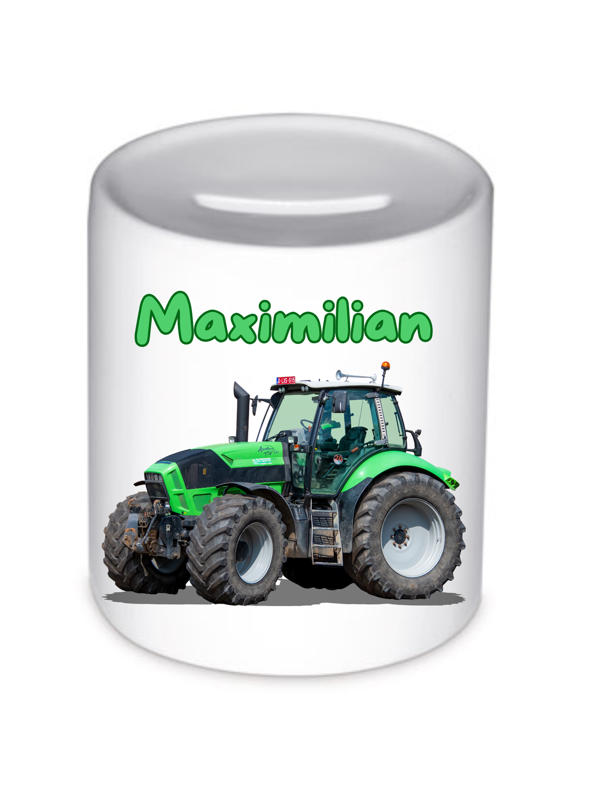 - Personalisierbar: Mit individuellem Namen und Traktor-Motiv.