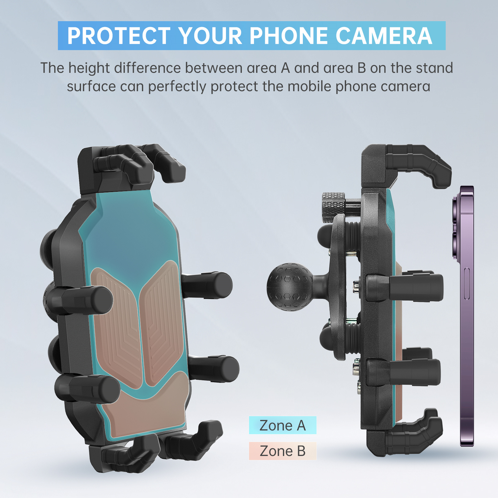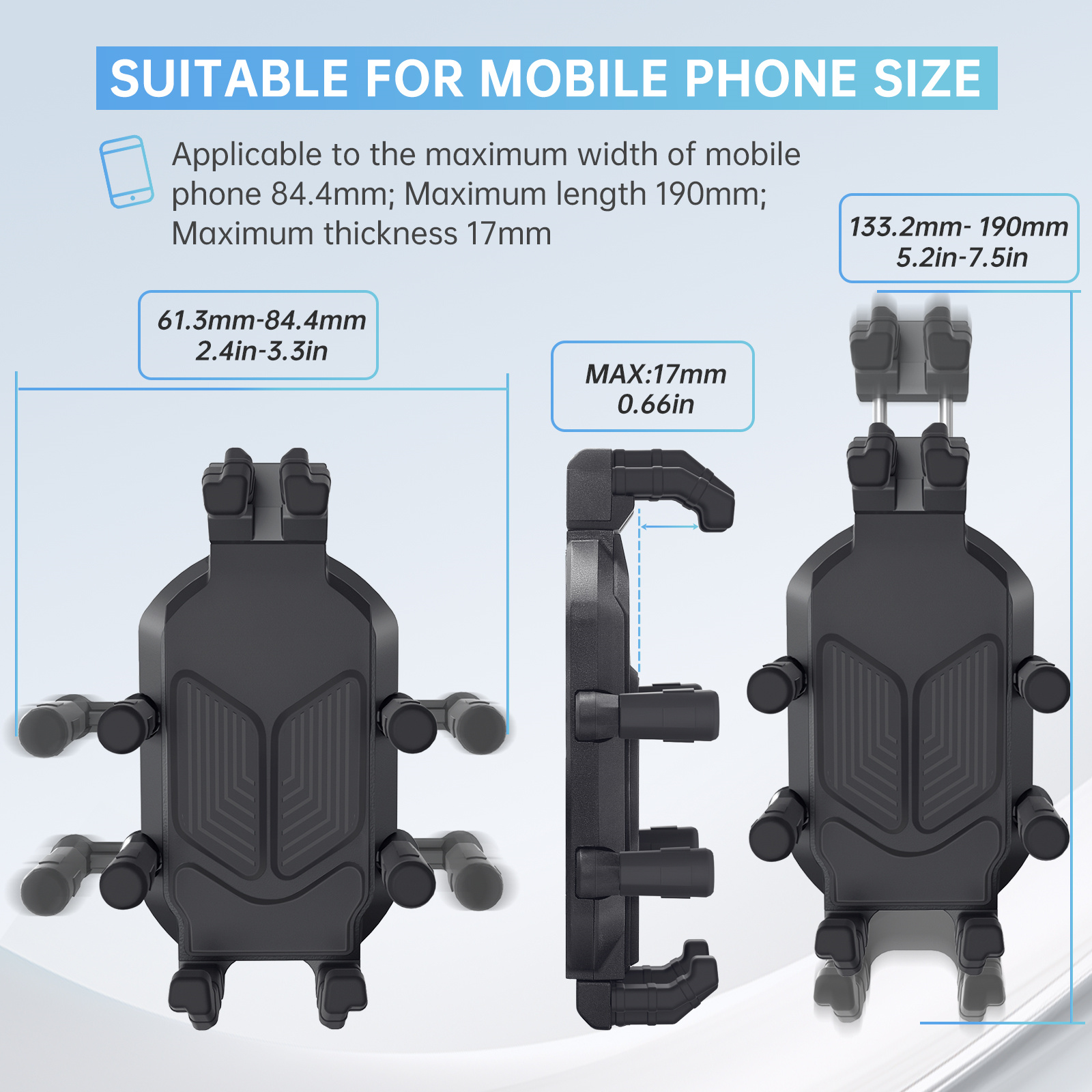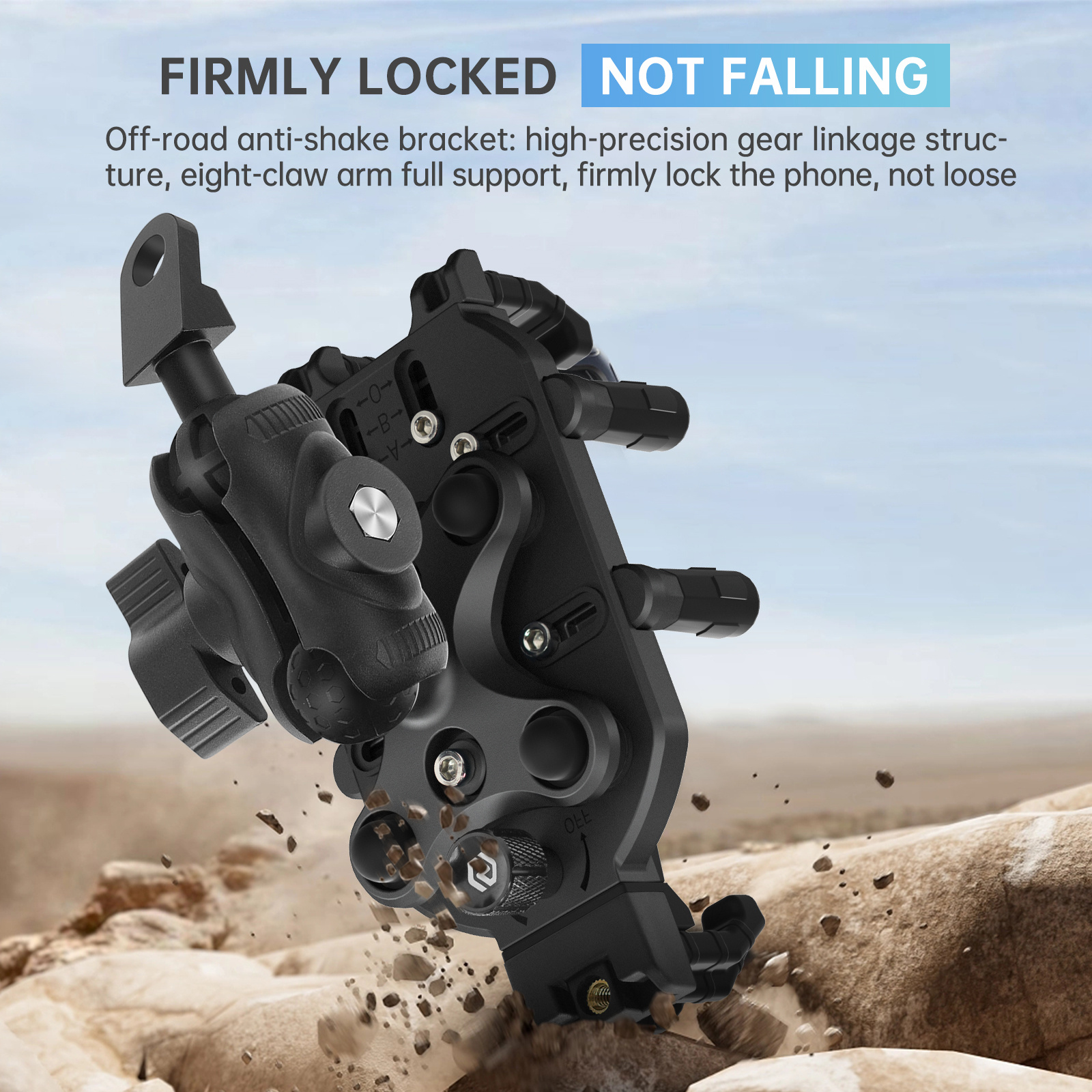 l Off-road grade anti-shaking bracket: High-precision gear linkage structure, eight-jawed clamping arm all-around support, firmly lock the mobile phone, do not come loose