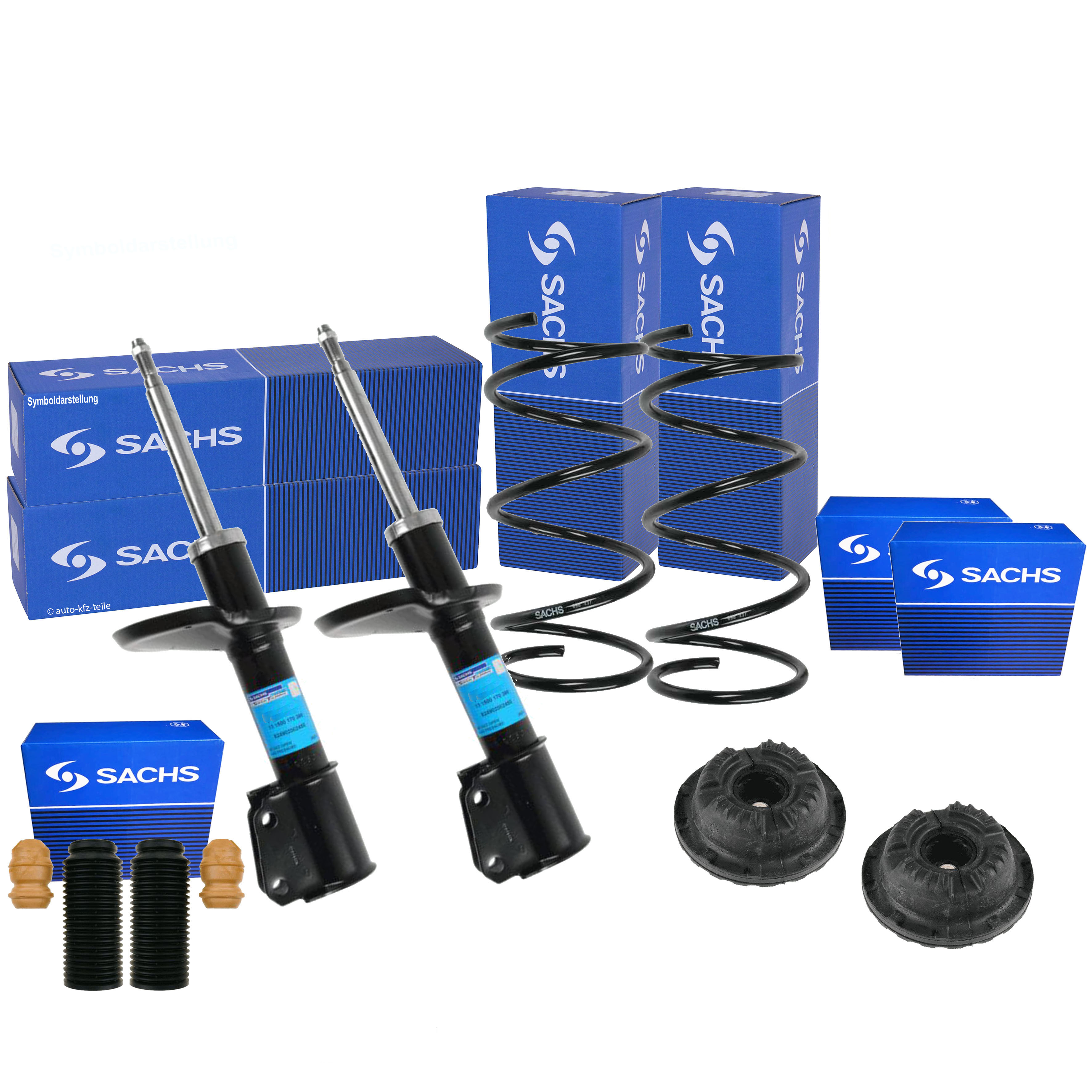 Lieferumfang : 2x Stoßdämpfer;2x Reparatursatz, Federbeinstützlager;1x Staubschutzsatz, Stoßdämpfer;2x Fahrwerksfeder Einbauposition : Vorne|Links|Rechts