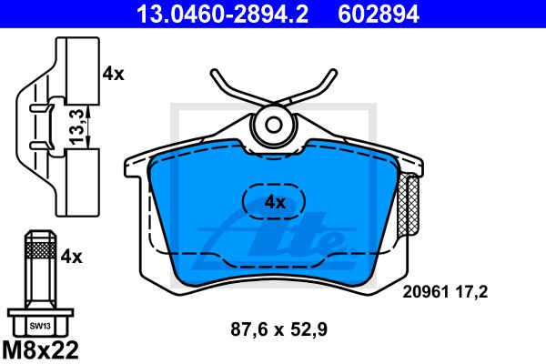 Bremsbelagsatz, Scheibenbremse EAN 2 : 4006633201643 Herstellnummer 2 : 13.0460-2894.2 Dicke/Stärke [mm] : 17,2 Prüfzeichen : E1 90R-02A0333/0221,E1 90R-02A0650/0200 Breite [mm] : 87,6 Höhe [mm] : 52,9 Verschleißwarnkontakt : exkl. Verschleißwarnkontakt Ergänzungsartikel/Ergänzende Info : mit Zubehör Bremssystem : Lucas / TRW Ergänzungsartikel/Ergänzende Info 2 : mit Bremssattelschrauben Anzahl der Schrauben : 4 Artikelnummer des empfohlenen Zubehörs : 13.0460-0072.2 MAPP-Code vorhanden : MAPP-Code vorhanden Abmessungen beachten : Abmessungen beachten