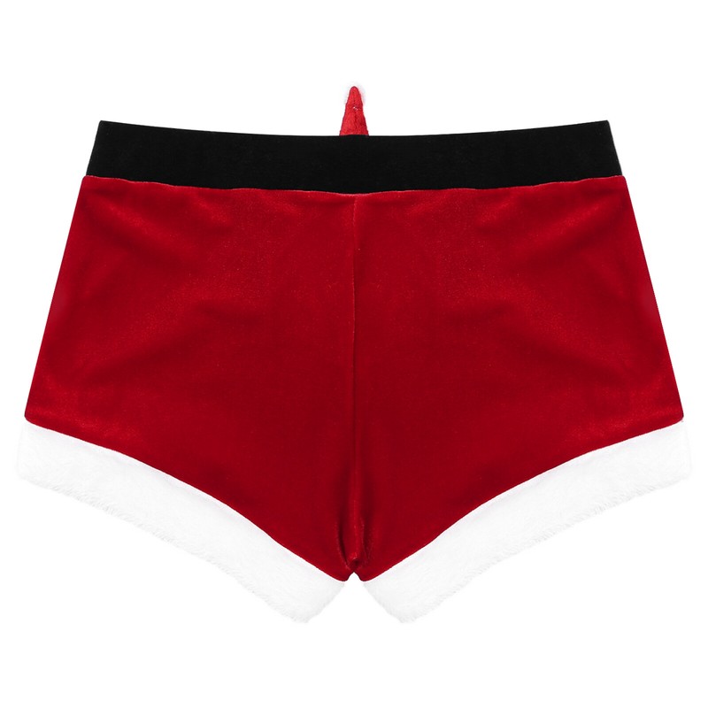 Elastic waistband, front Christmas reindeer pattern bulge pouch, open butt design.