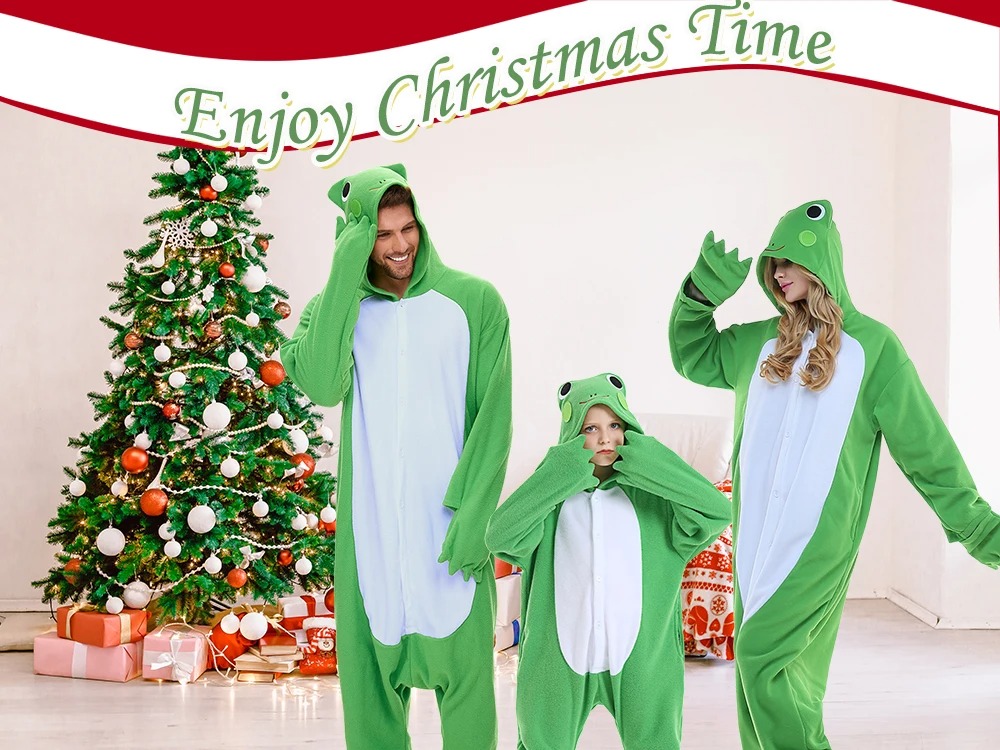 This Christmas, let's make our homes a haven of warmth, laughter and unforgettable memories - all in these festive frog one-piece pajamas.