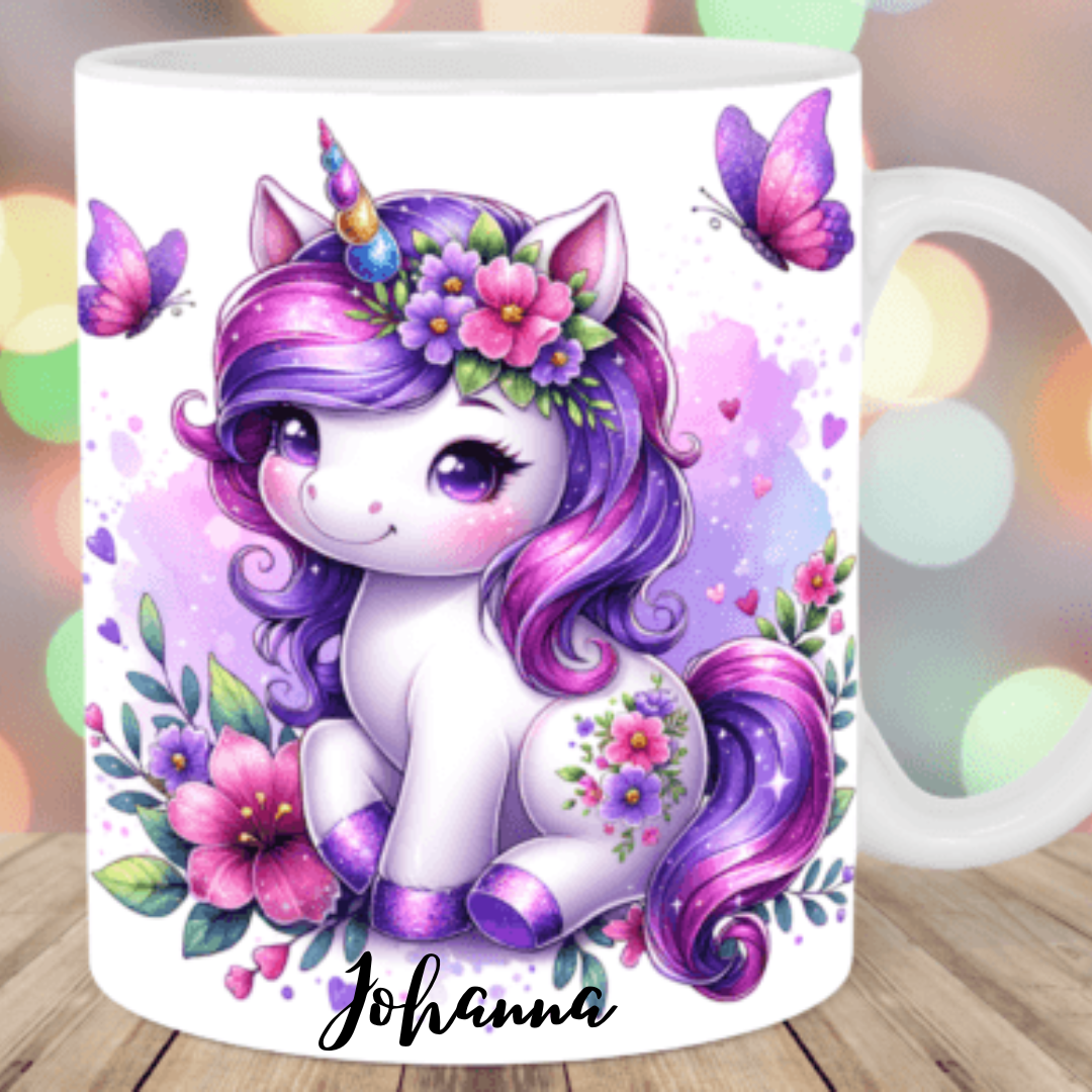 Personalisierte Einhorn-Tasse – Mit Namen & Regenbogen-Motiv, Keramiktasse