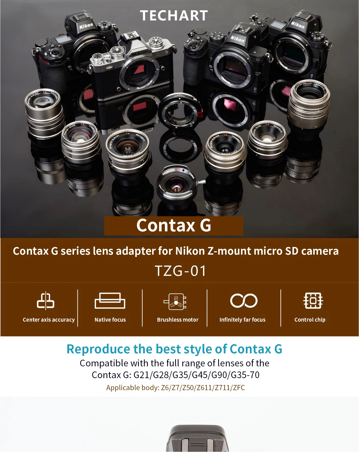 TECHART TZG-01 Auto Focus Lens Adapter For Contax G Lens to Nikon Z mount Camera