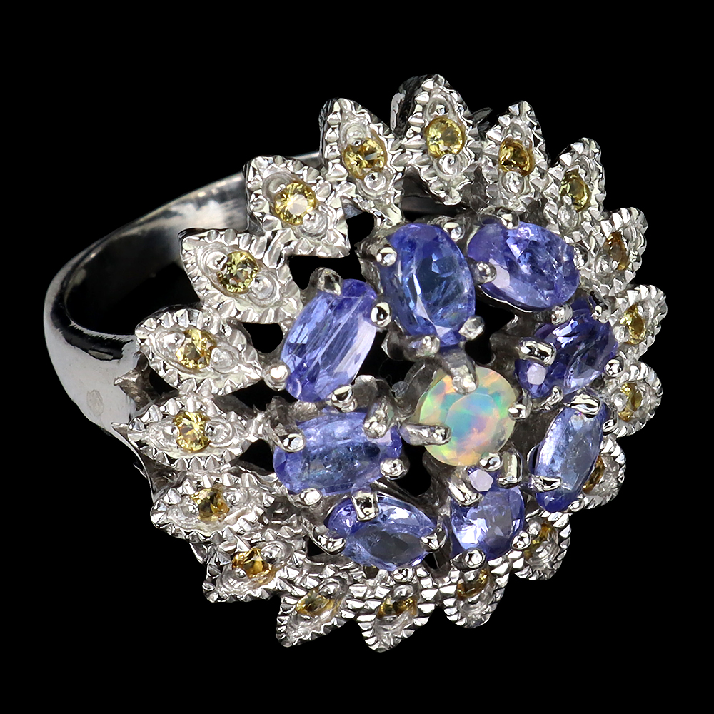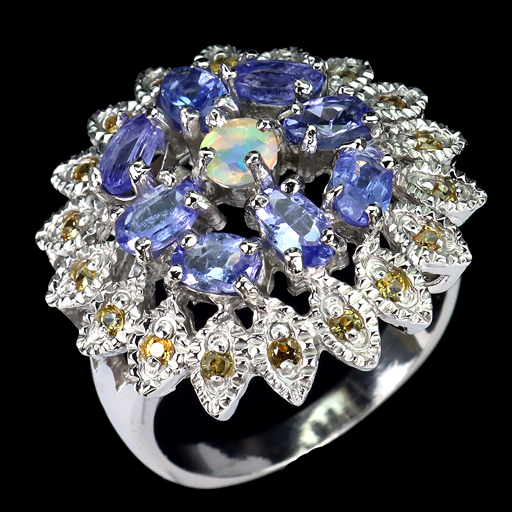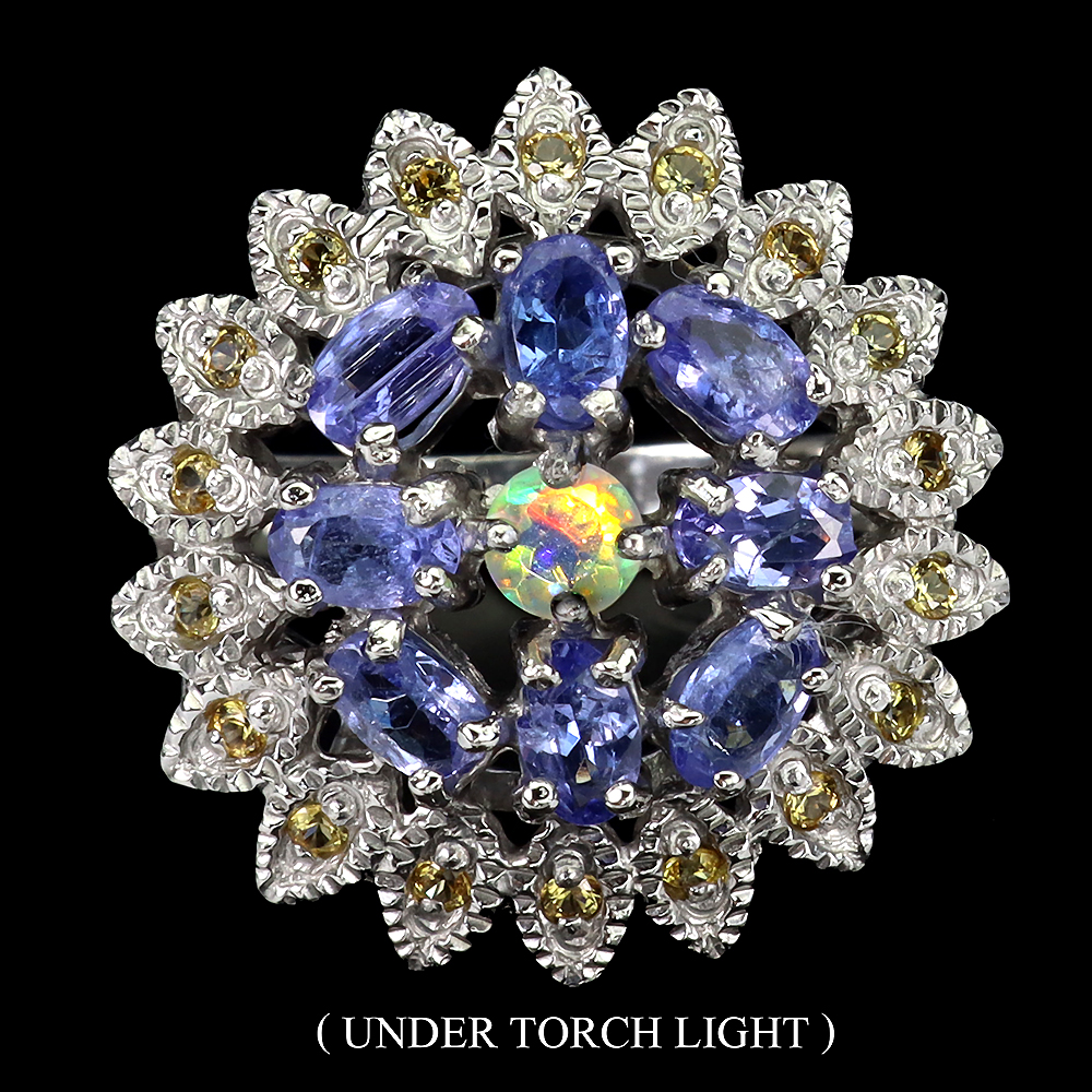 925 Sterling Silver Ring Oval Tanzanite Fire Opal Sapphire Gemstone jewelry Size 8