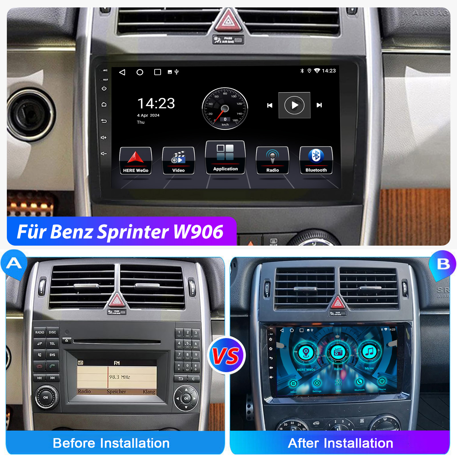 9 Zoll Android 15 Autoradio Für Mercedes Benz A/B-Class: Das Android Autoradio mit 9" 1280* 720 HD IPS kapazitivem Touchscreen, 2GB RAM und 32GB ROM ermöglicht das Herunterladen Ihrer Lieblings-Apps und -Videos, damit das Autofahren nicht mehr langweilig wird. Kein zusätzlicher Rahmen, kein Kabelwechsel, Plug and Play.