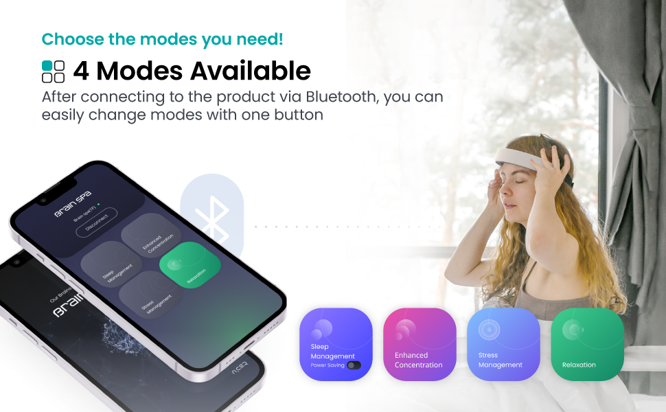 The Brain spa operates in the default sleep mode without Bluetooth. When connected to the Bluetooth application 'Brain spa,' you can enjoy various useful modes.