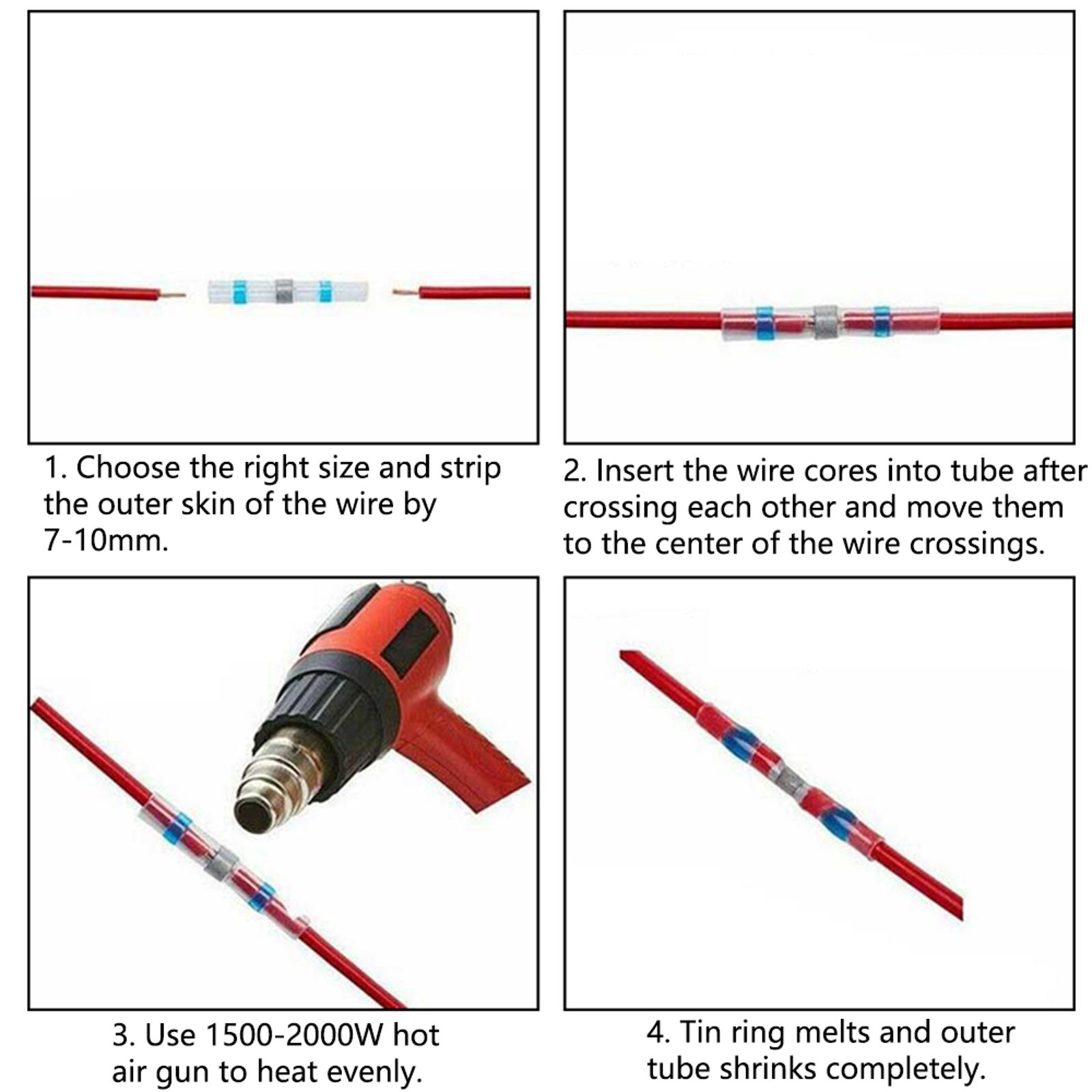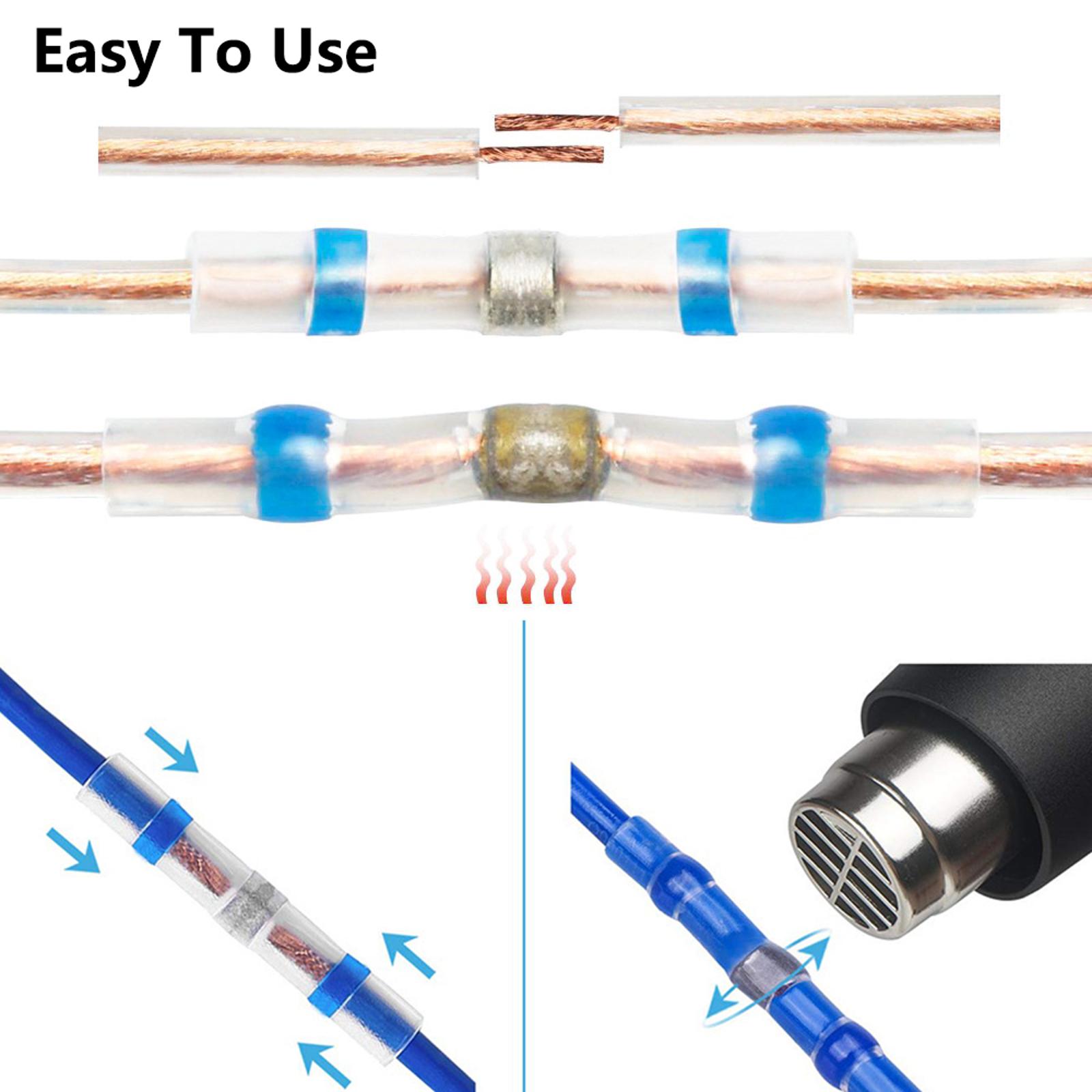 【Material】Waterproof shrink connector set is made of tin dot and hot melt shrink tube, easy to melt and connect, very easy to use, the heat shrink tubing makes it good waterproof and can be used for a long time.