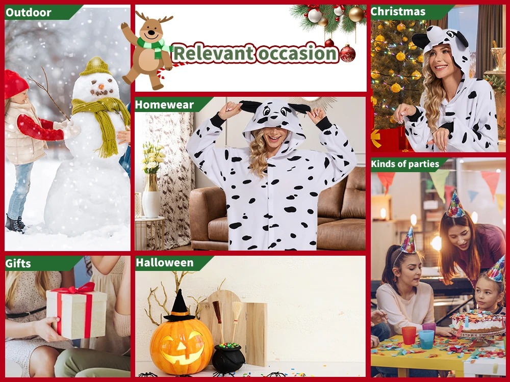 On holidays like Christmas or Halloween, our dalmatian dog one-piece cosplay sleepwears add atmosphere to a simple holiday.You can wear it to take fun photos with your family and