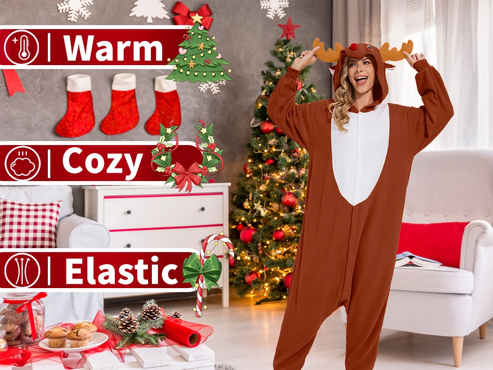 On holidays like Christmas or Halloween, our Reindeer one-piece cosplay sleepwears add atmosphere to a simple holiday.You can wear it to take fun photos with your family and