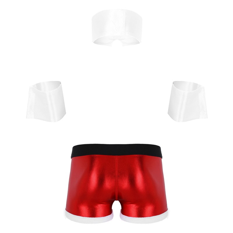 Mens Collar Cuffs with Zipper Patent Leather Briefs/Boxer Shorts Underwear.