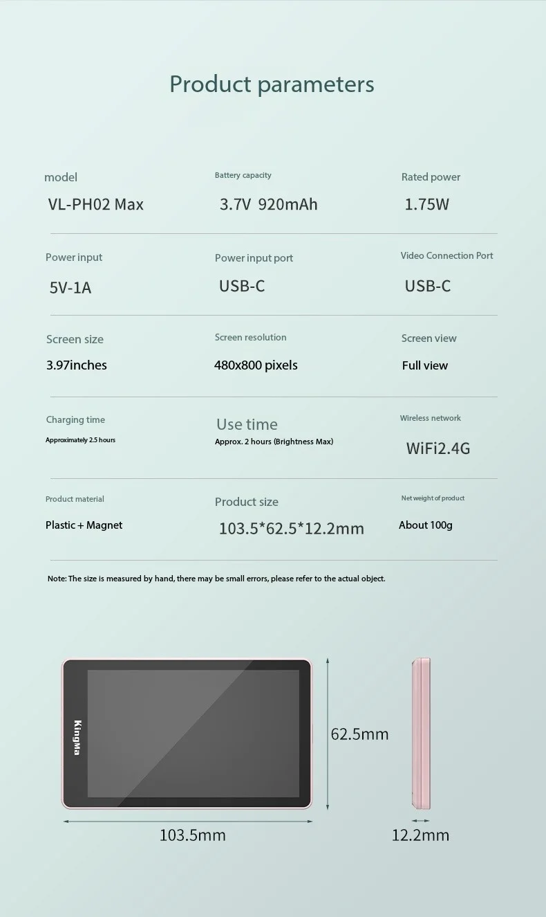KingMa PH02 Max Phone Vlog Selfie Monitor Screen Rear Camera Magsafe Magnetic